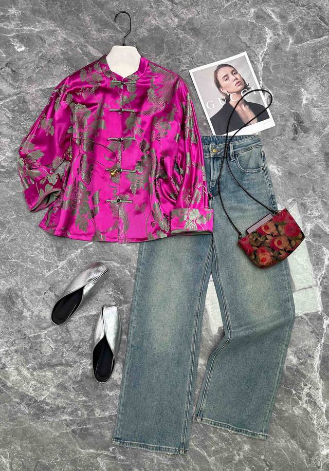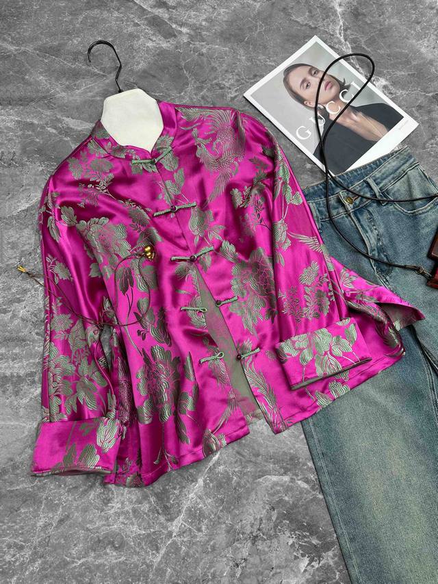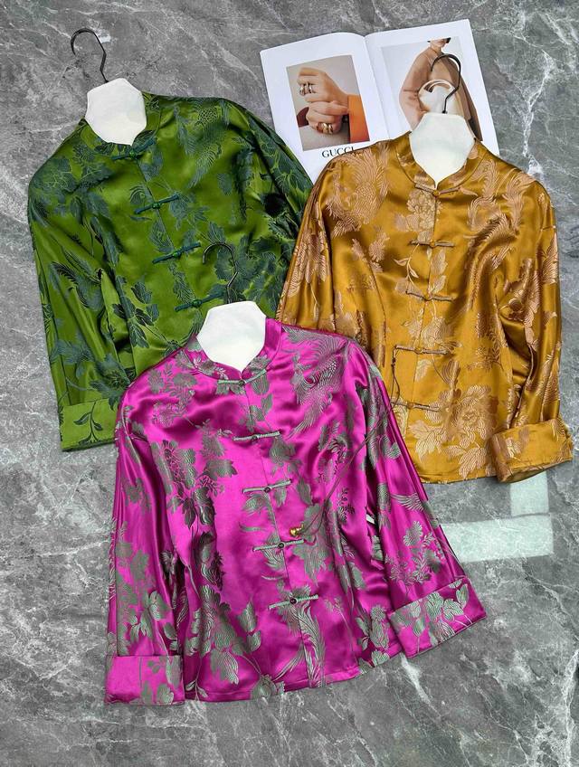 Early autumn hot new mulberry silk old satin jacket, old satin, the years give the gorgeousness and charm, is not only a kind of fabric, but also a witness of the years. Even after the wind and rain, the color is still as bright as new, soft and silky, with strong tolerance. Plum pink, yellow, green, SML Xl