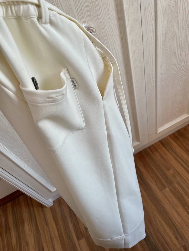 color matching strap decoration , a button and a single pocket on the back. The detailed design has a strong presence. Made of high-weight 560G high-end suit material. The fabric contains mulberry silk, Tencel and rayon viscose with delicate texture. It feels full, soft and has bones. The wide-leg H-shaped nine-point trousers have a neat, loose and lazy length, combining a sense of fashion with a retro and elegant temperament. In winter, pair it with a down jacket or a large coat to make you look taller. Pair it with furry shoes to maximize the atmosphere.