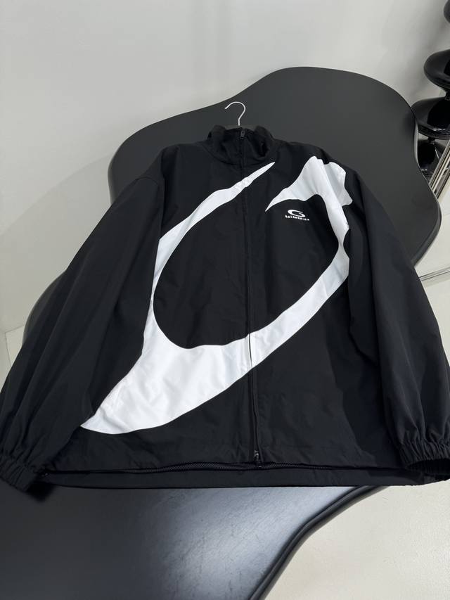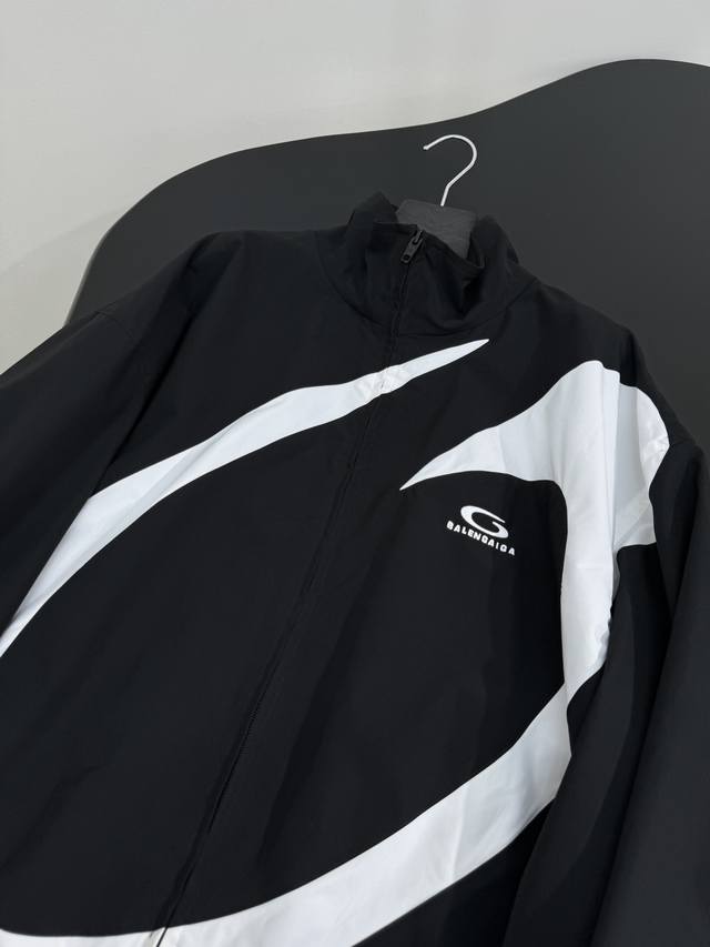 Early Autumn New Arrival Basketball Series Baggy Windbreaker/Sports Jacket Custom-dyed white and black technical fabric Two zippered slanted pockets Gathered cuffs and waist Front embroidered with Basketball Series Baggy artwork Unisex High-quality version! A must-have! Black and white color blocking