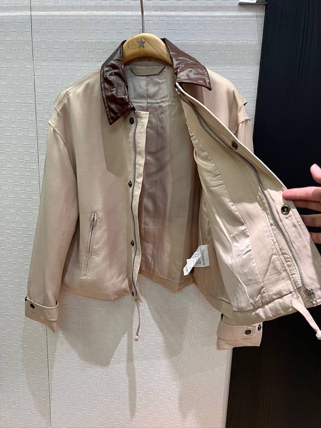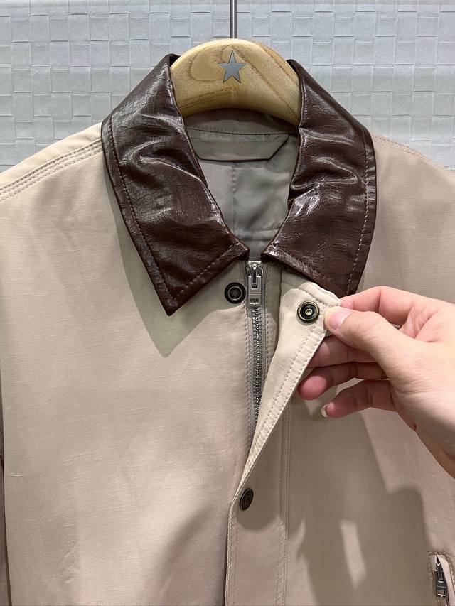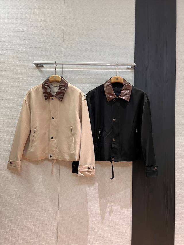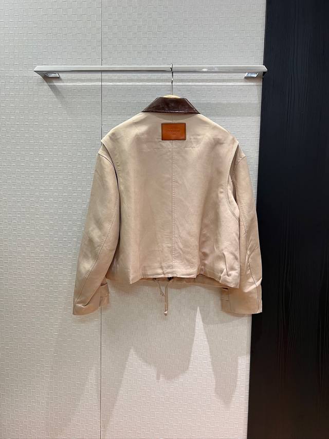 Early Autumn New Arrival Recommendation: Ac Barn-style Leather Collar Patchwork Loose-fitting Jacket with Drawstring Hem and Waist-cinching Design; Distressed Logo Leather Label Decoration on the Back; Stylish, Cool, and Versatile; Black/Khaki/S/M/D/D
