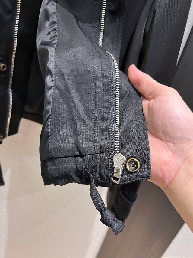 Early Autumn New Arrival Recommendation: Ac Barn-style Leather Collar Patchwork Loose-fitting Jacket with Drawstring Hem and Waist-cinching Design; Distressed Logo Leather Label Decoration on the Back; Stylish, Cool, and Versatile; Black/Khaki/S/M/D/D