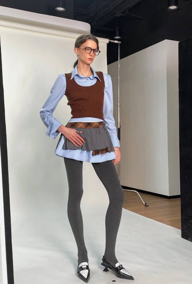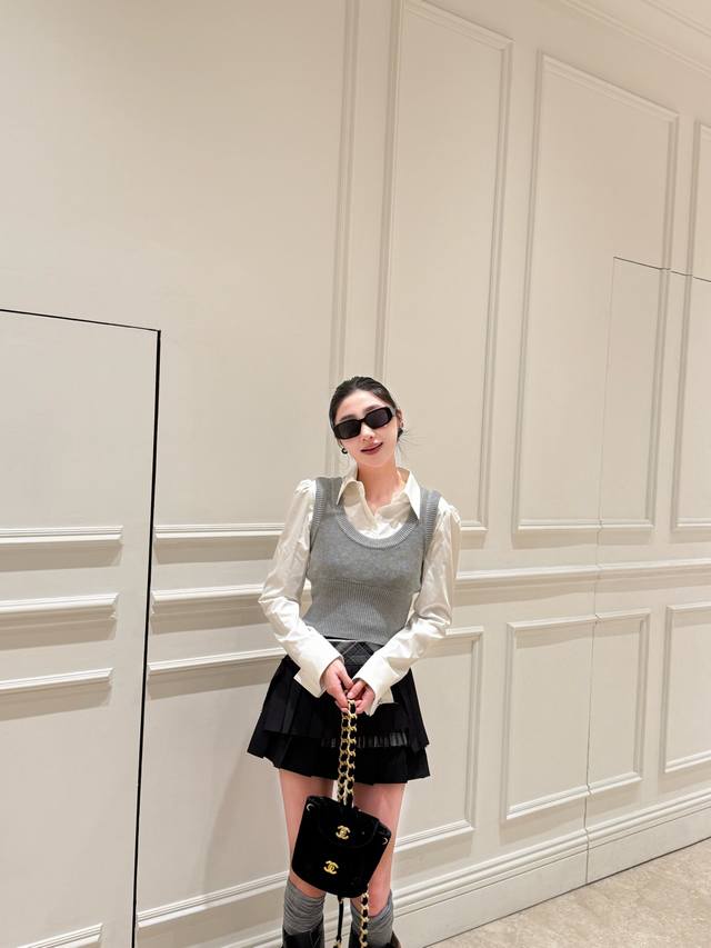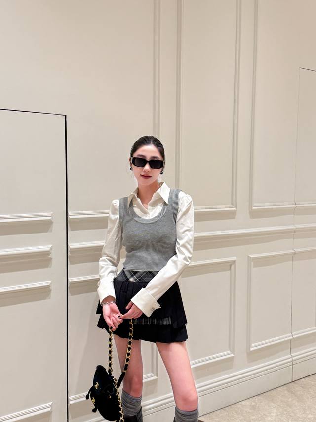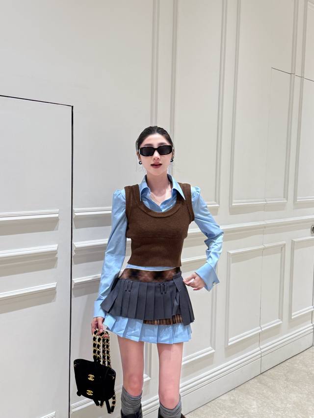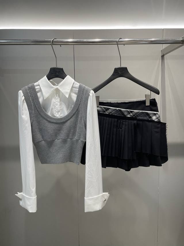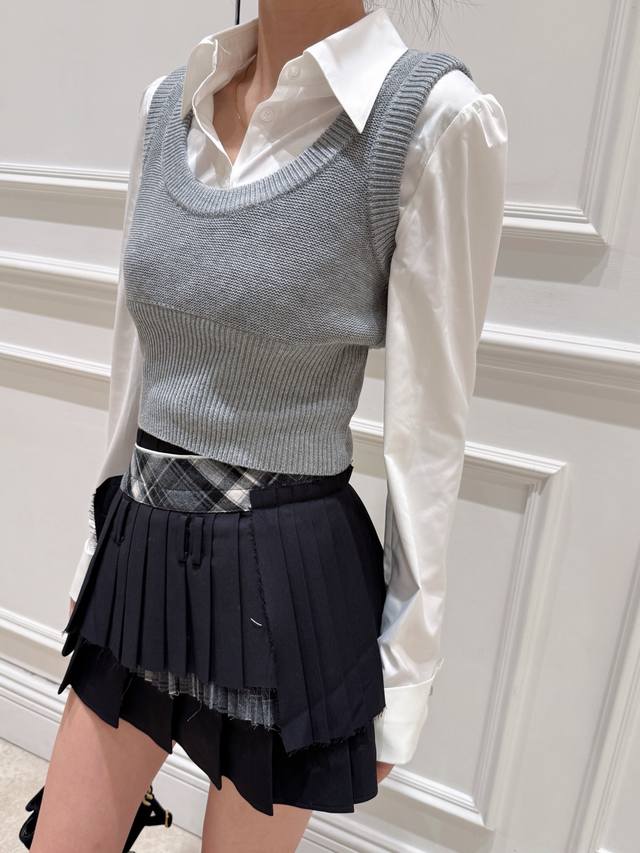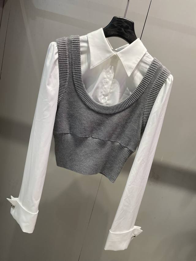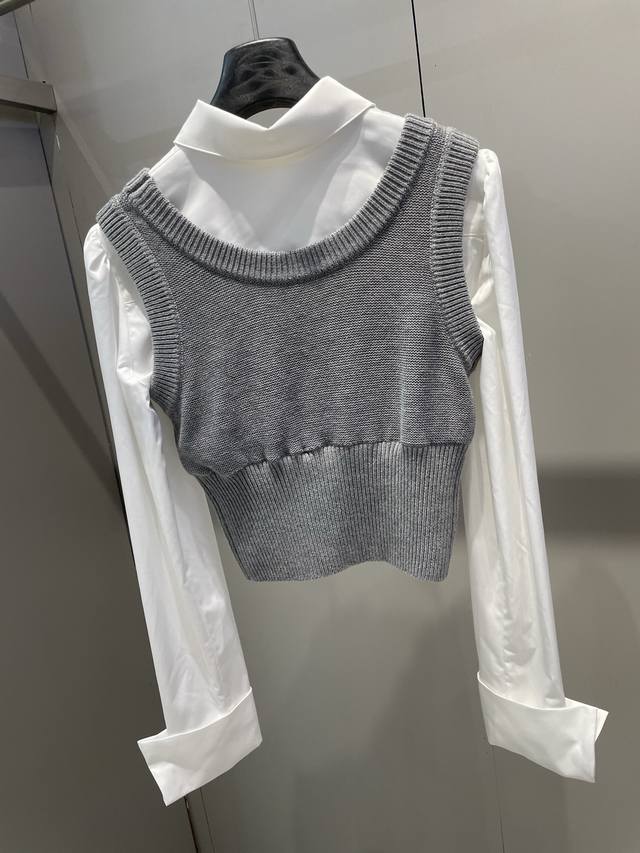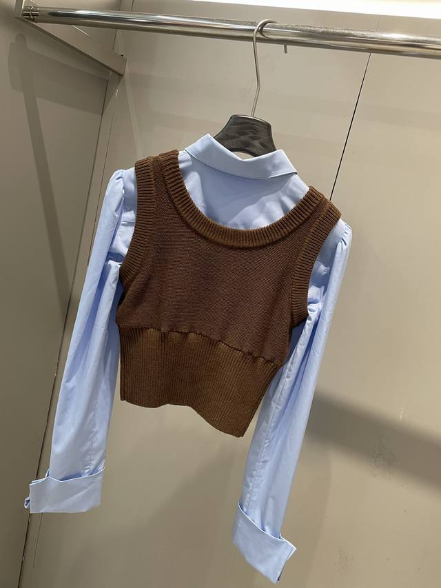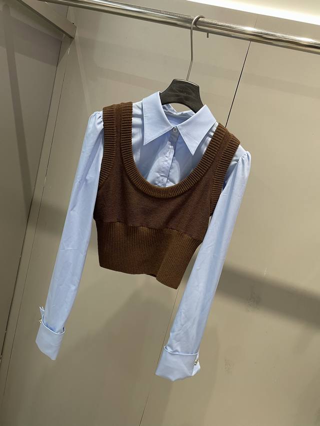 / Early autumn new arrivals Fake two-piece contrasting knitted patchwork shirt an