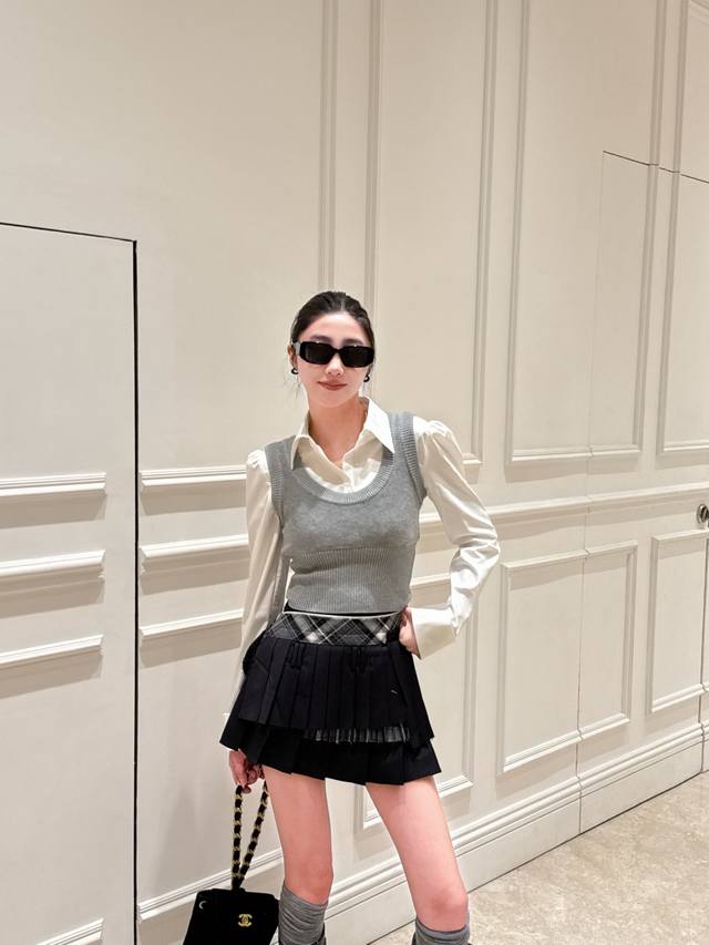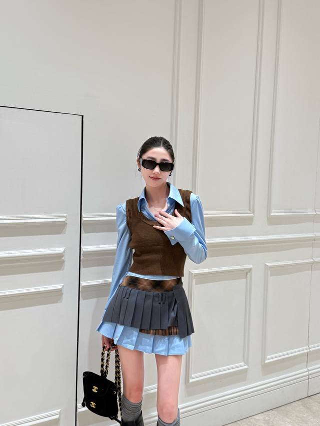 Miumiu 2025 New Letter Patchwork Regular Plaid Shirt, made of custom imported Yb