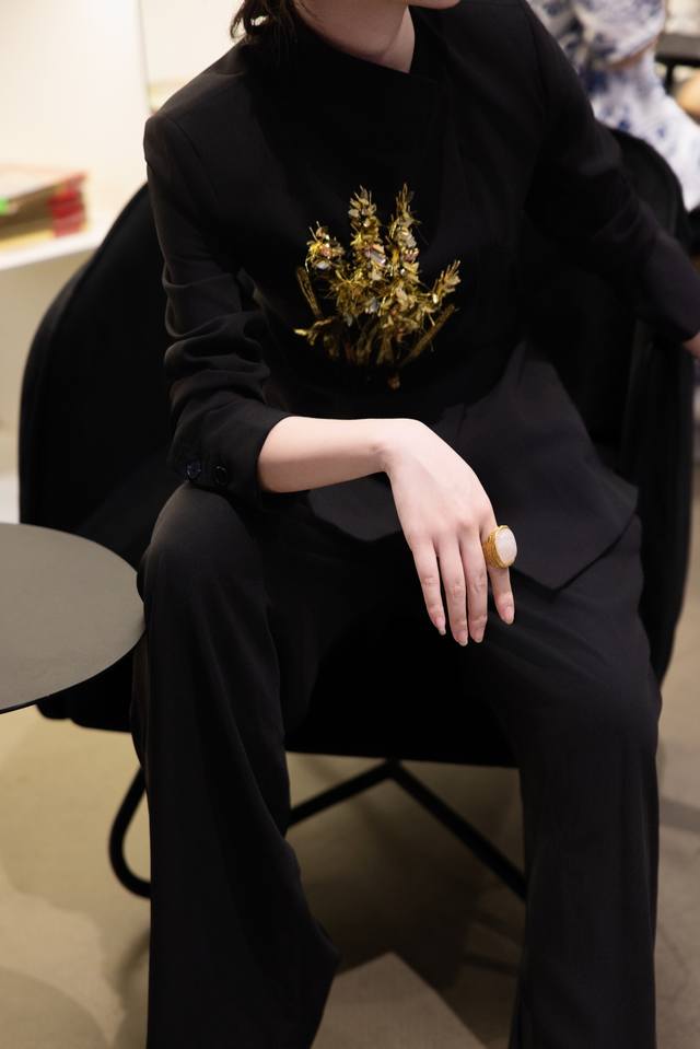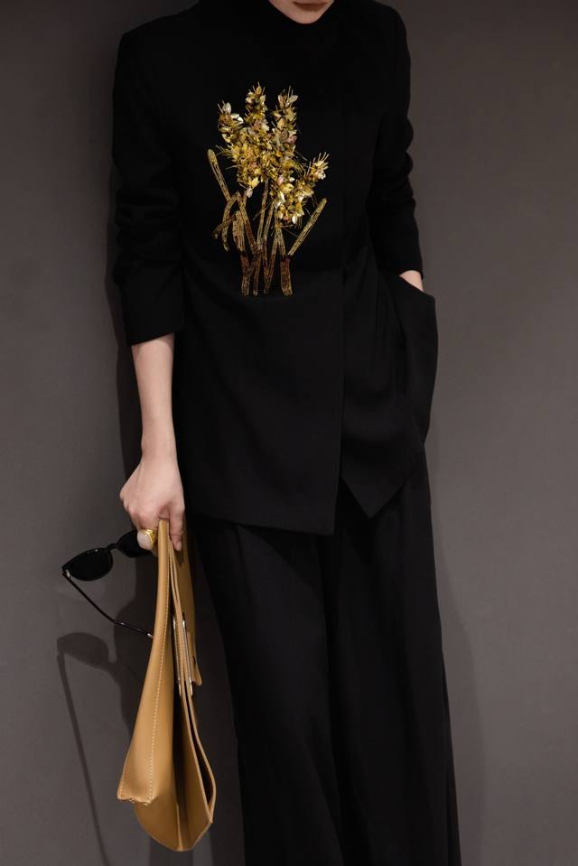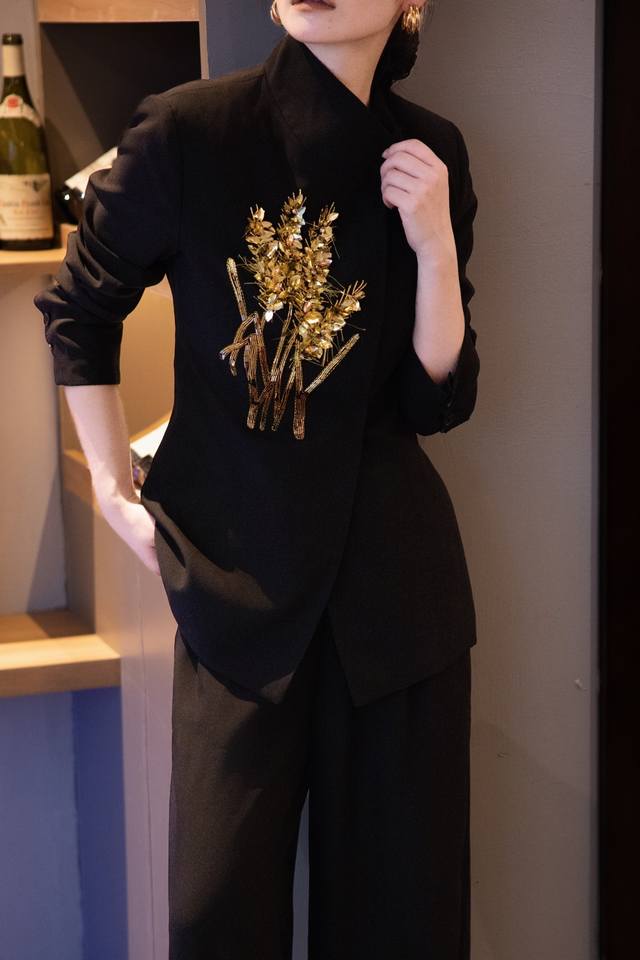 "Haute Couture Brilliant" series Italian heavy-duty beaded gold wheat ear suit and wide-leg pants suit, Smlxl