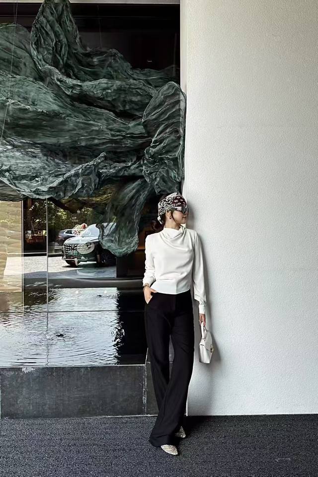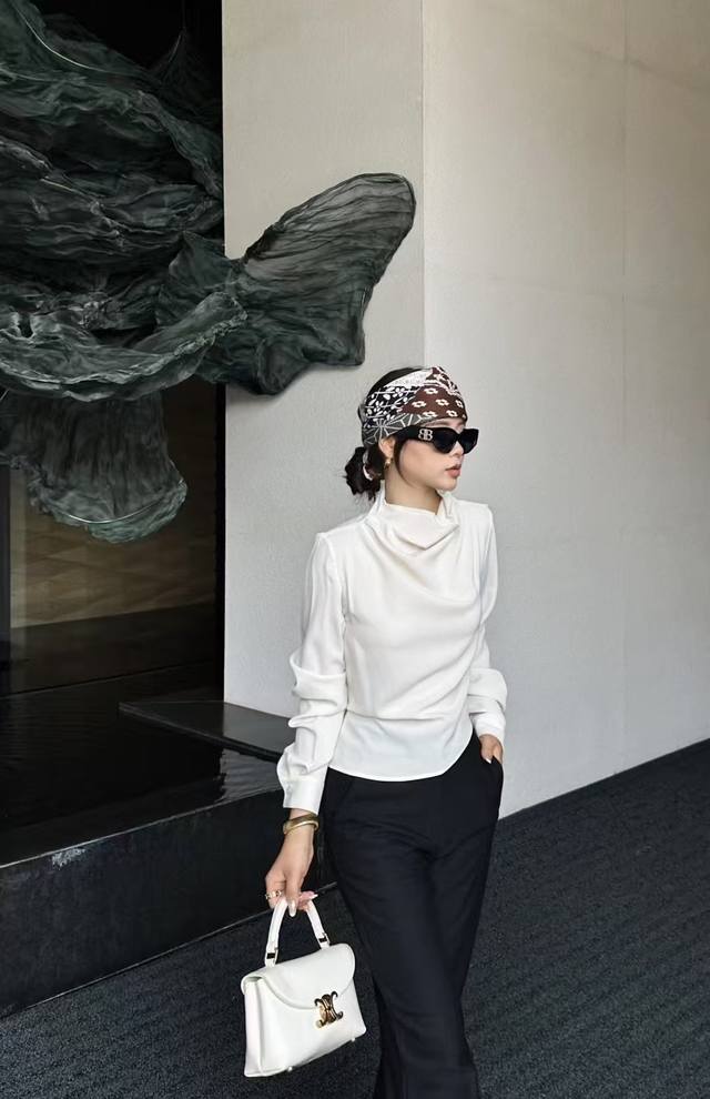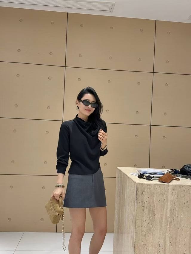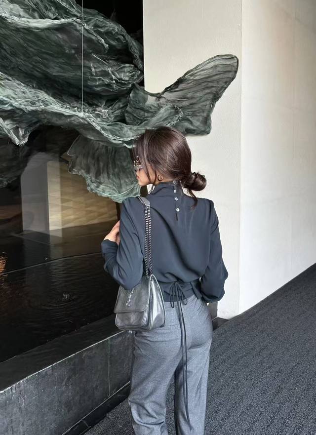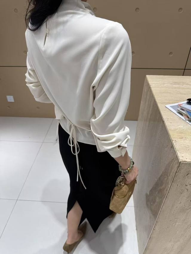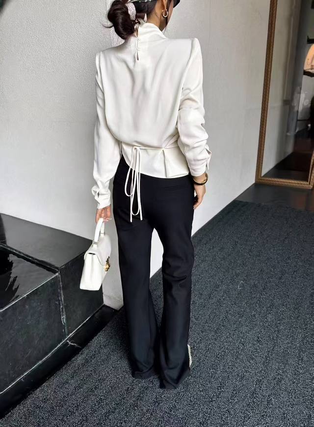 Early autumn new three-color sway collar design single-breasted tie waist shirt, super running style! Simple and not picky, and very elegant