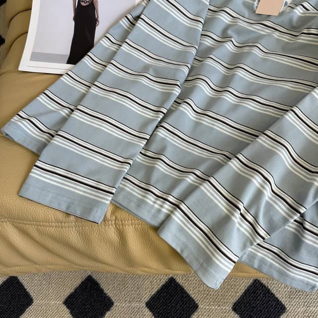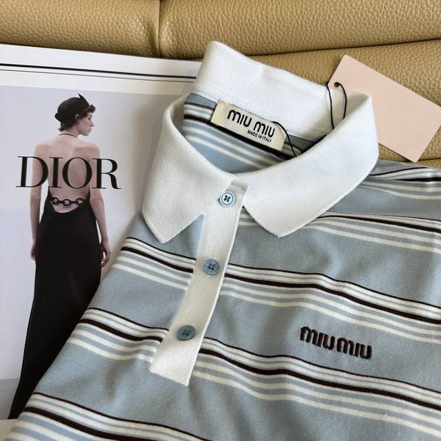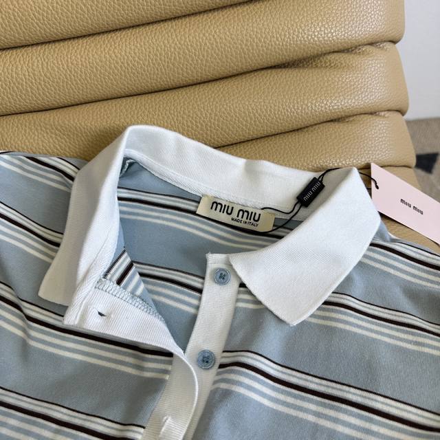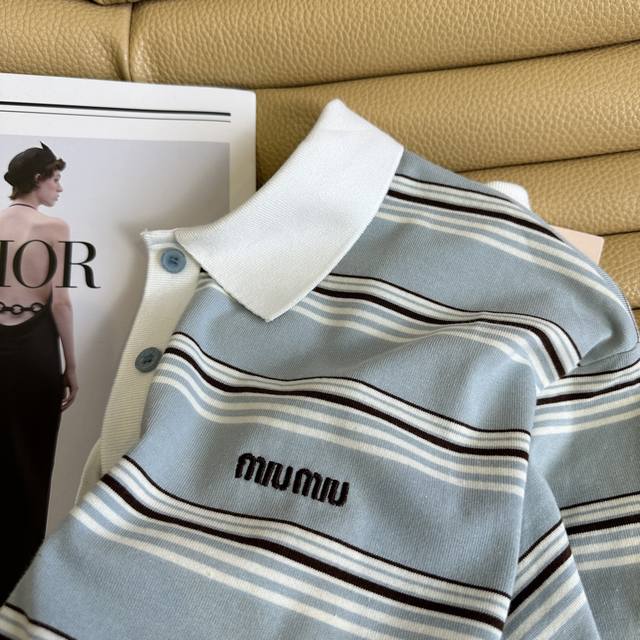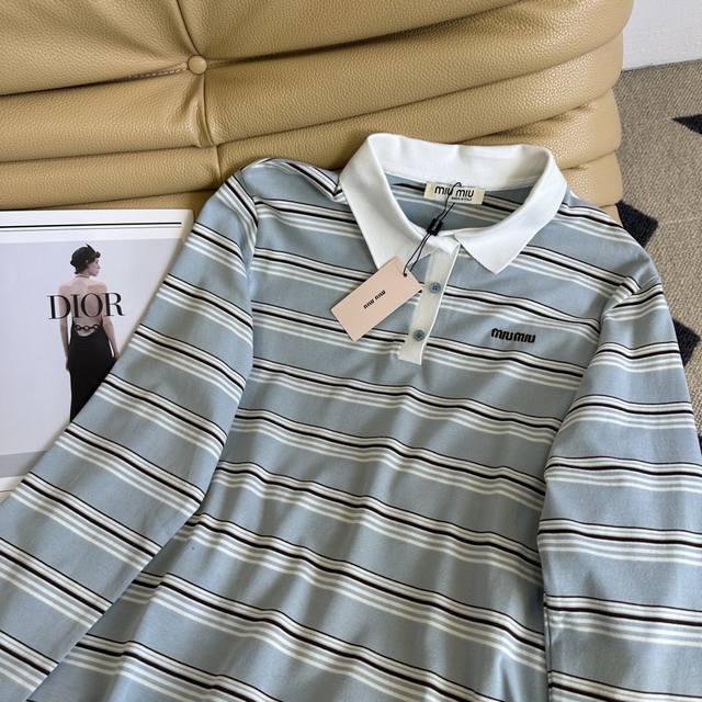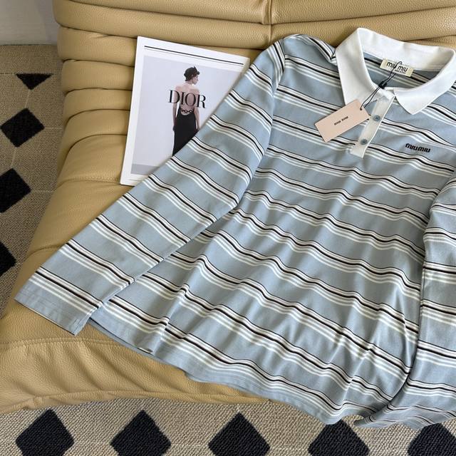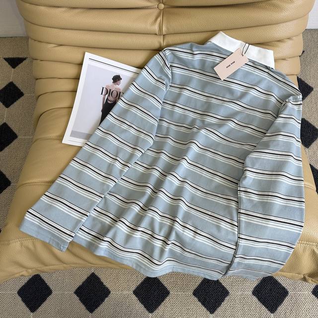 Early Fall New Arrivals 25Ss ~Miu* Lapel Striped Long Sleeve T-shirt This year'