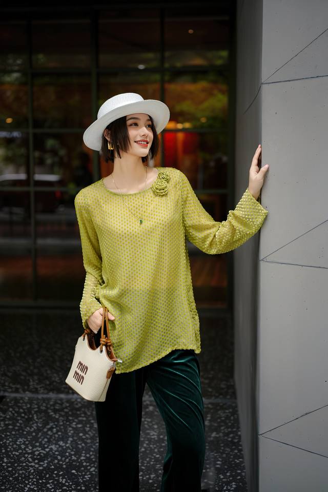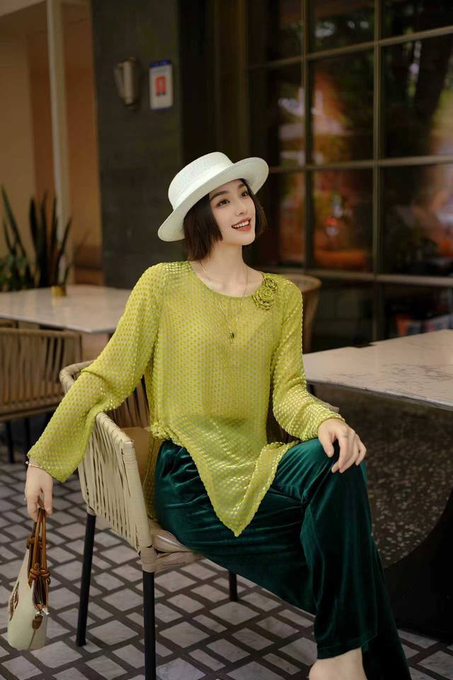 Early Fall New. Silk velvet. Polka dot jacquard. S-Xl DDD
