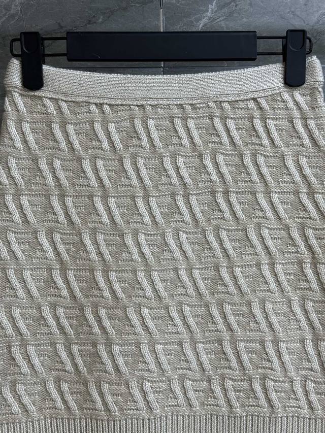 Fd jacquard knit skirt 2025 Early Spring Collection High waist design elongates the legs. Three-dimensional Ff jacquard pattern and cool color scheme. Premium wool blend fabric is soft and skin-friendly. Slim fit makes the upper body look slim and elegant. Brand name complete. Sizes Sml