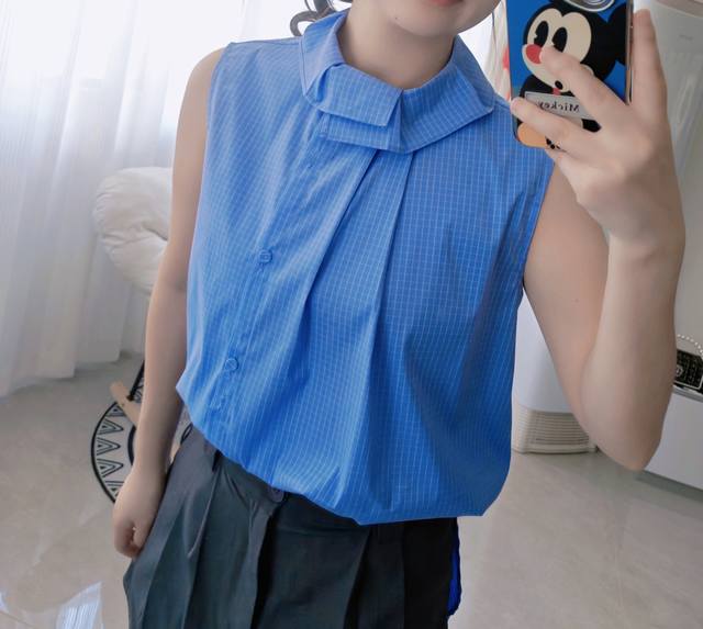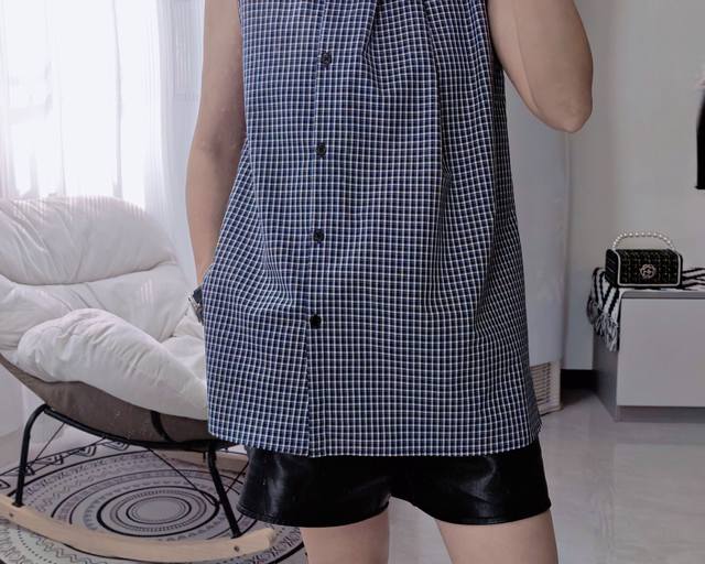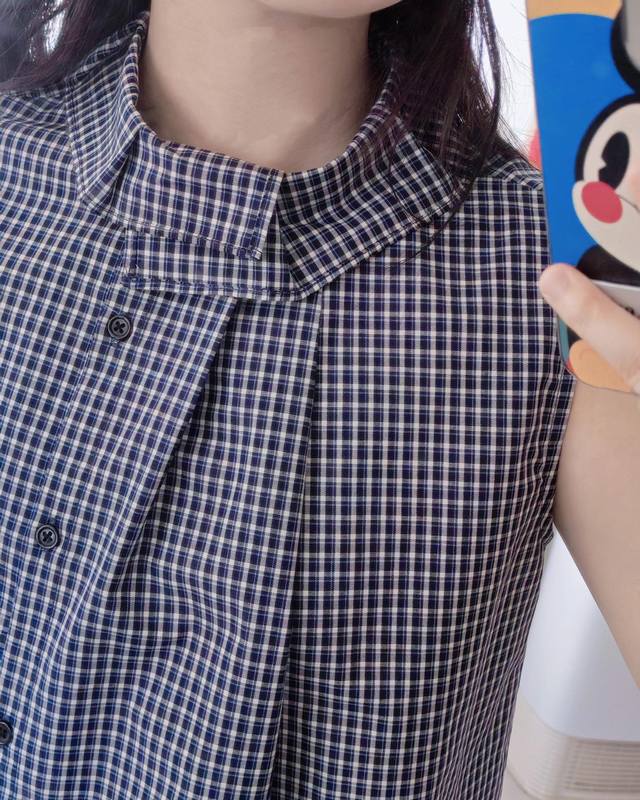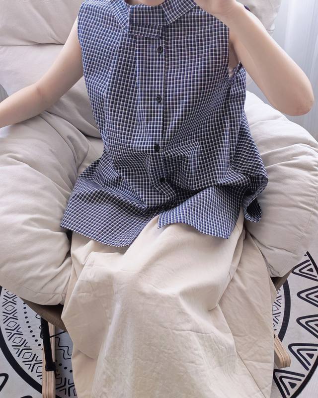 Early Spring Sleeveless Plaid Series Flower Bud Shirt, All-Season Item, High-Sales Promotion, Vest Layered with Sweater, Superb Shirt Inner Layer Vest Outerwear, Superb Colors Dark Blue and Light Blue, Sizes S-XL Ddd, Fabric: Cotton DDD