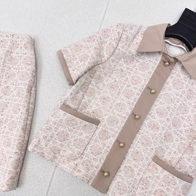 Elegant lady temperament Cd 25Ss The latest early autumn diamond lattice woven suit. Lapel short-sleeved woven jacket + skirt. The exquisite feeling can't be hidden. The upper body is a set of high-end temperament. The woven match with contrasting color edging design is very figure-hugging. It is a set that hides meat and can be easily controlled by small people. Yb development fabric texture is very good. One color is separated and sold separately. Sml S code: Jacket shoulder width 34 bust 100 length 49 skirt waist 64 hip 90 skirt length 45 manual measurement error jacket 260 skirt 190
