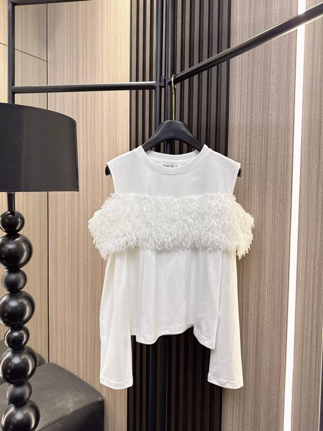Enfold's new 2025 Fall collection features a feather-stitched, off-the-shoulder long-sleeved pullover top. This top is gentle and lively, showcasing a sophisticated charm! Made of comfortable fabrics with an exquisite feather-stitched design, the off-the-shoulder cut highlights the clavicle. This versatile piece will make you stand out at dates and parties, perfectly balancing elegance and sexiness. Available in three colors: Sml