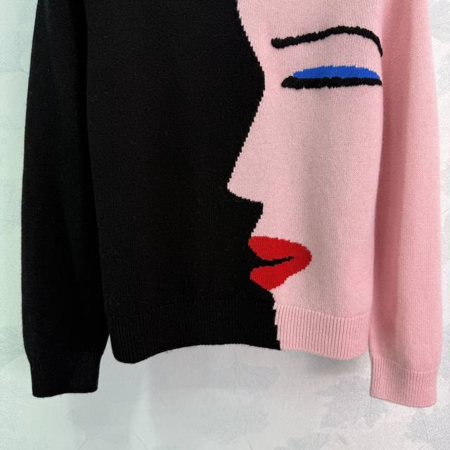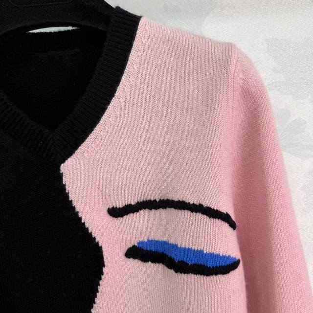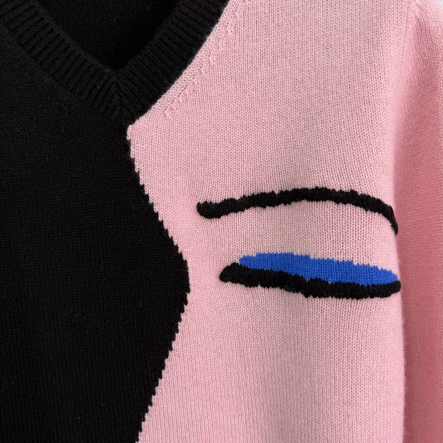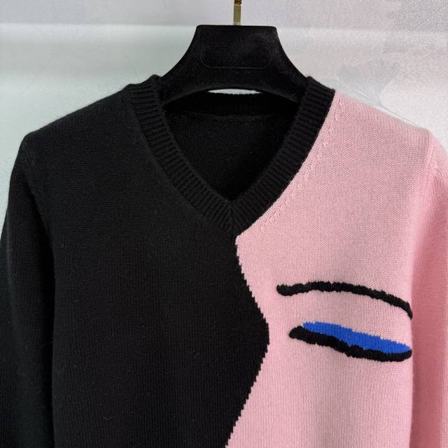 Erdos* 2025 Fall/Winter new abstract face print pullover sweater! Custom-made from imported wool, this long-sleeved, V-neck pullover features a beige and pink colorblock pattern. The hand-painted abstract face pattern is jacquard-crafted to create a playful, textured pattern that's both artistic and stylish, showcasing individuality. This classic, loose-fitting design is comfortable and adaptable to any body type! Available in 3 sizes (Sml T226B,