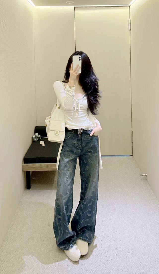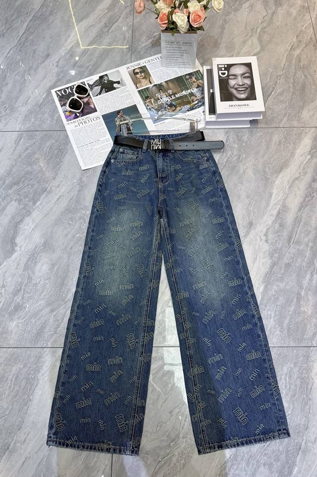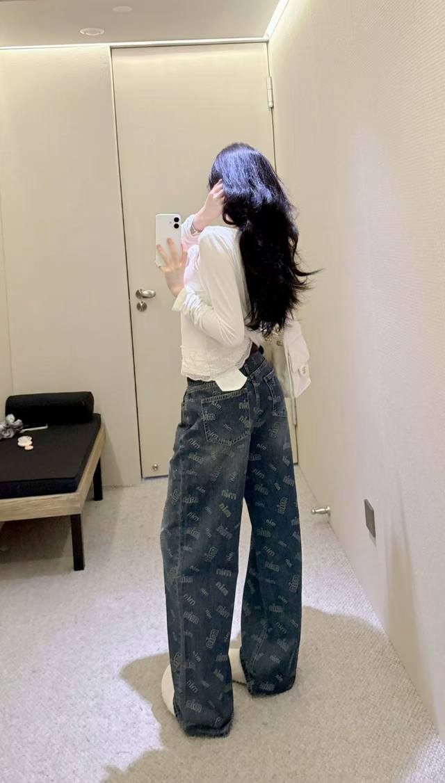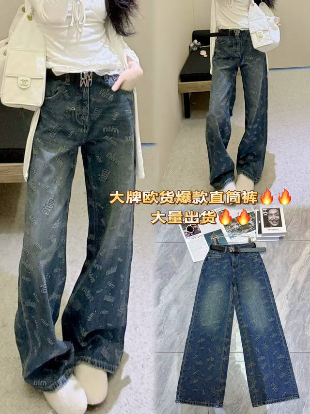 European hot-selling straight jeans with full-print letters have a big brand style. The retro blue is very textured. High waist + loose pants, hide meat and stretch legs, lazy and fashionable with one click~ Paired with a simple top, it is easy to wear a street style, suitable for daily outings and explosions, whoever wears it will fall in love with Smlxl