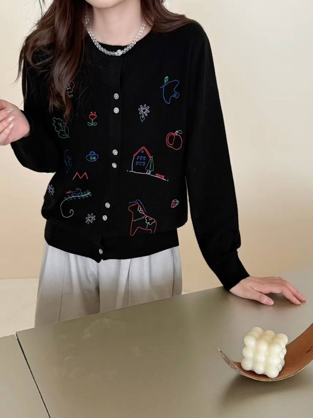 / European Station 2025 Early Autumn New Women's Round Neck Cartoon Embroidery Co