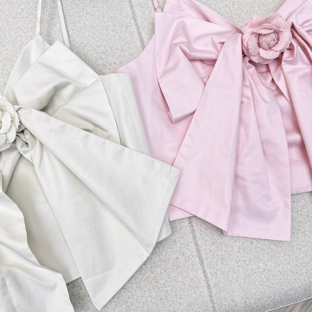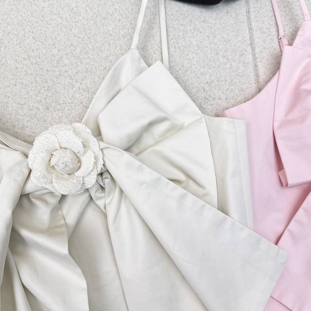Exclusive C 25Ss latest autumn and winter Coco girls wear two-piece suit camellia decoration bow small suspenders woven trim short jacket customized plaid woven fabric heavy and weighty three-dimensional handmade small flower decoration is beautiful ~ daily photo taking is definitely good-looking two colors are available for sale Sml S size: jacket shoulder width 36 chest 88 length 40 suspenders chest 84 length 31 excluding shoulder straps manual measurement error suspenders jacket