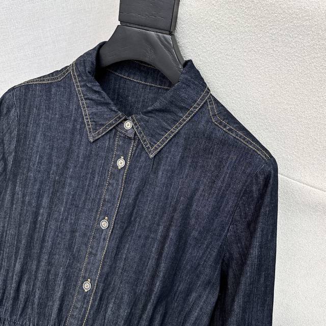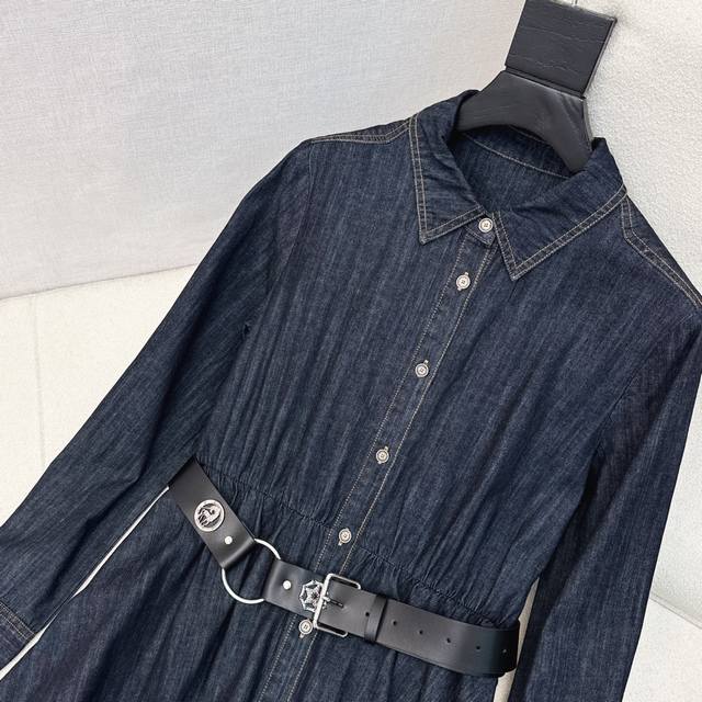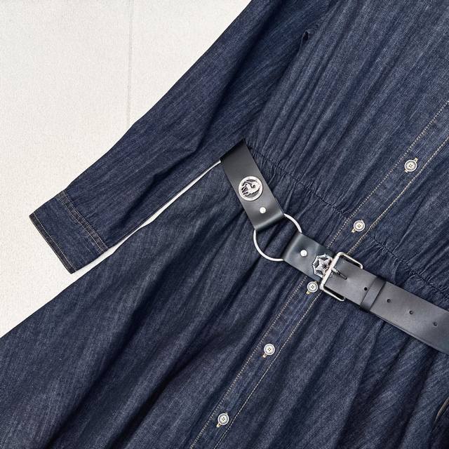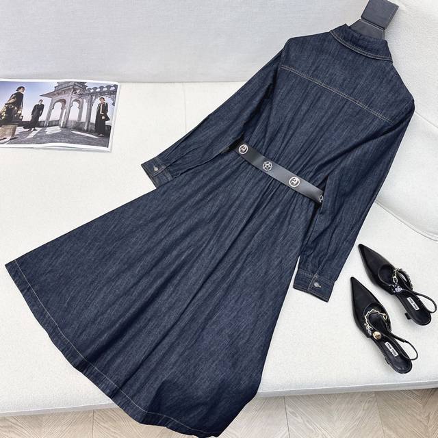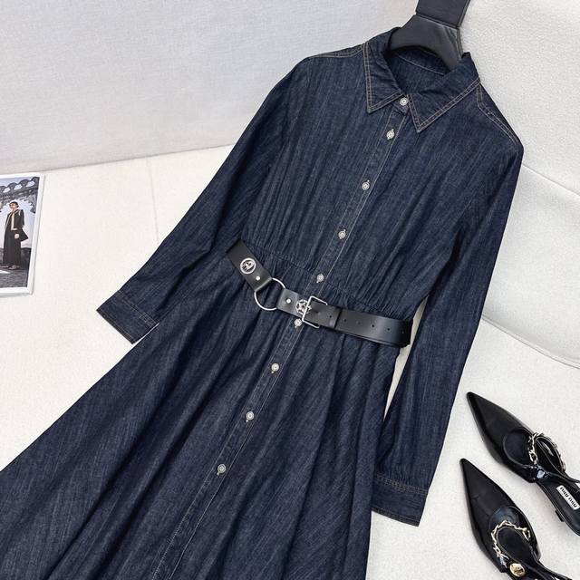 Exclusive debut CD 25Ss Spring/Summer newest long denim dress. Custom denim material, retro washed color, crisp and stylish. Paired with a custom belt to define the waist, the three-dimensional tailoring creates a casual look. Whether it's for everyday travel or a casual get-together, all in one color. Available now. Sml S bust 90cm length