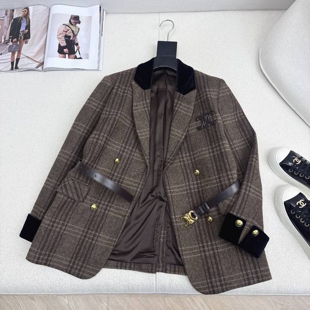 Exclusive debut Ce 25Ss latest autumn and winter patchwork velvet retro plaid s