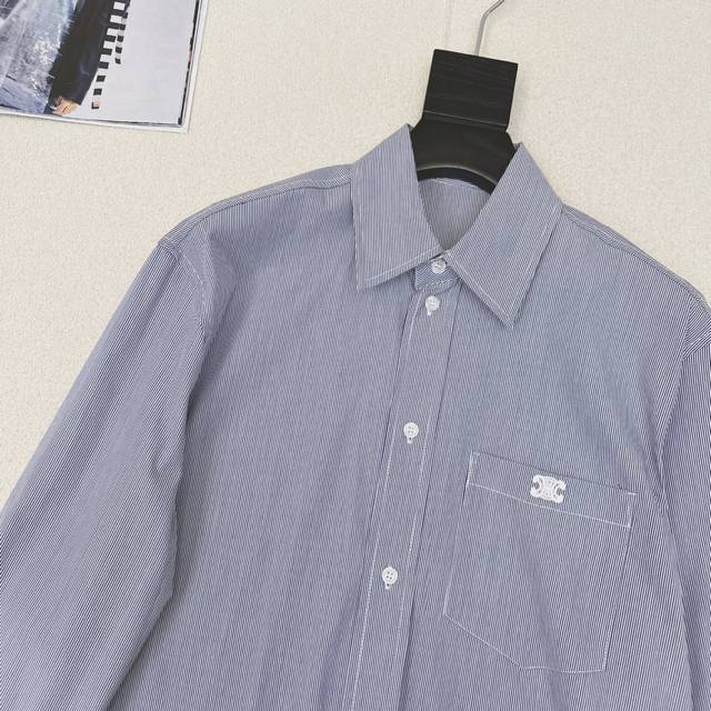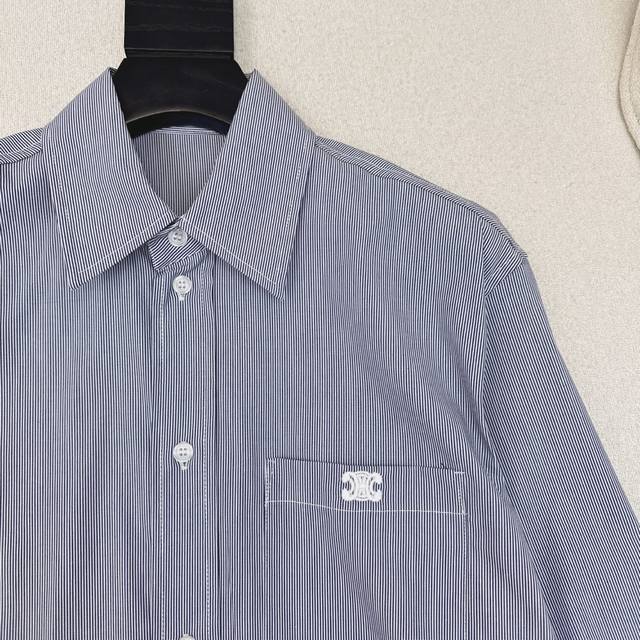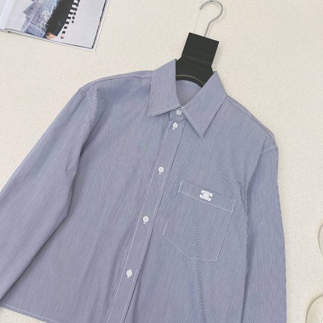 Exclusive first Ce 25Ss Spring and summer newest blue striped short shirt Loose