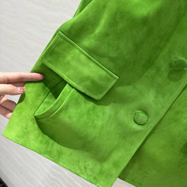 Exclusive first release, a must-have for high-end quality lovers! A stylish and stylish outfit for the ultimate in high-smart style! 25S Early Spring new arrival, exclusively custom-made suede with a stylish Pan Peter collar, creating a sweet or savory contrast! This season's must-have suede leather jacket! The classic H-cut silhouette is versatile and flattering! 100% imported lambskin suede with fully handcrafted buttons, a stylish and stylish wardrobe essential for the sweet and trendy girl. See for yourself the impeccable workmanship. A must-have for your next wardrobe! Available in two colors and 3 sizes. Size S: Shoulder 50cm, Chest 100cm, Length 64cm.