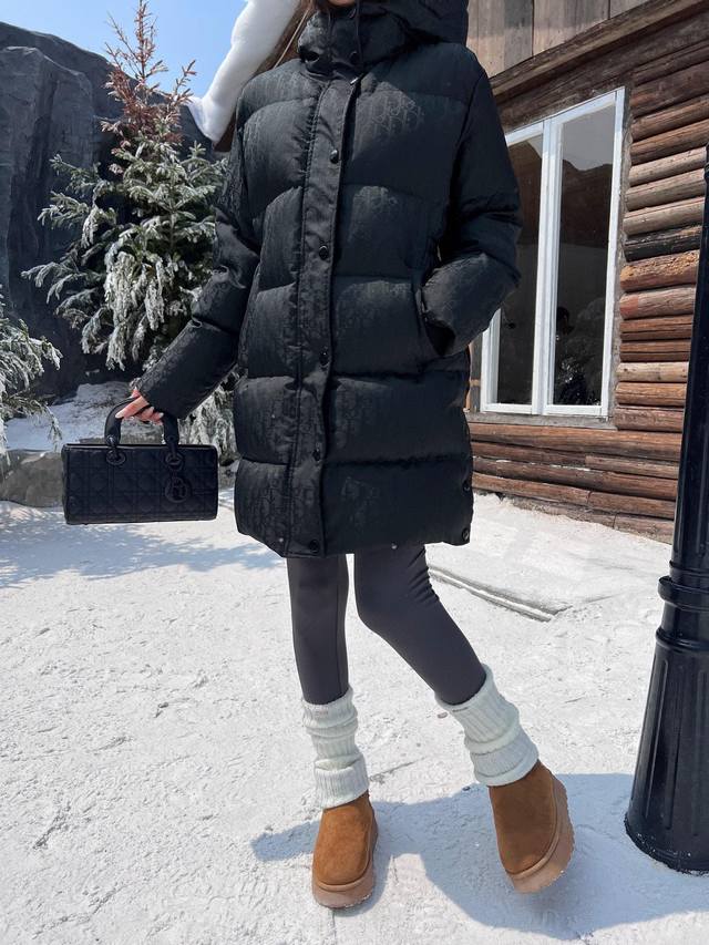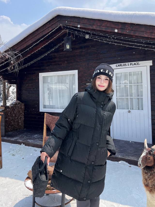 Exclusive first release Cd Ss Autumn/Winter new arrival Stand-up collar dark jacquard mid-length bread down jacket with included belt Three-dimensional tailoring H-shaped silhouette Classic, stylish and handsome Full filling Yb hardware details are a plus Recommended Sml