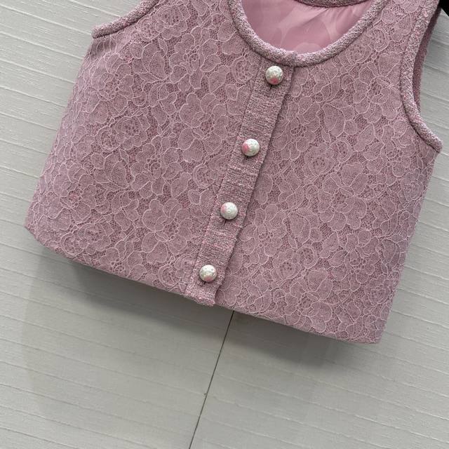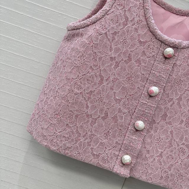 Exclusive First Release: Coco Girl's New 25B Pink Tweed Lace Vest! Custom-designed patchwork fabric with a delicate texture! A must-have for sophisticated women. Single-breasted H-cut short style, looks great worn alone or layered! Retro, elegant, and sweet, pearl buttons embellish the details showcasing quality craftsmanship. Available in 3 sizes. Size 36, bust 84cm, length 44cm. (DDD)