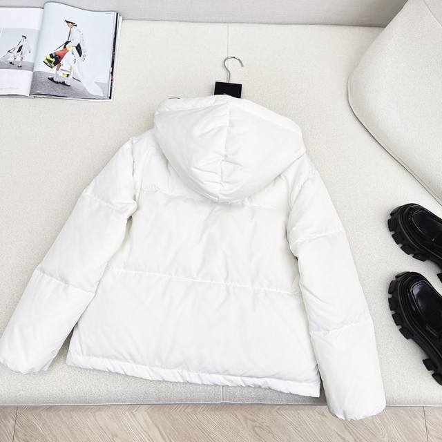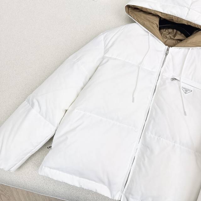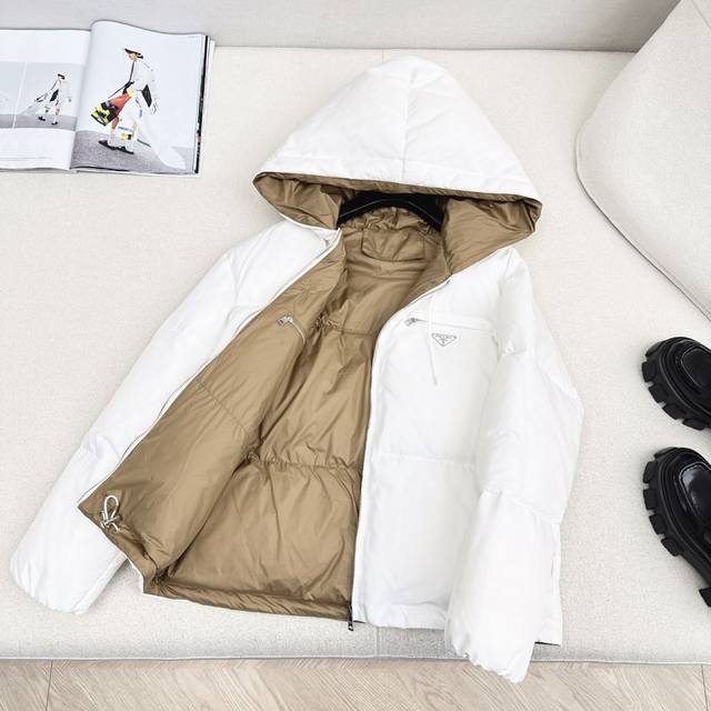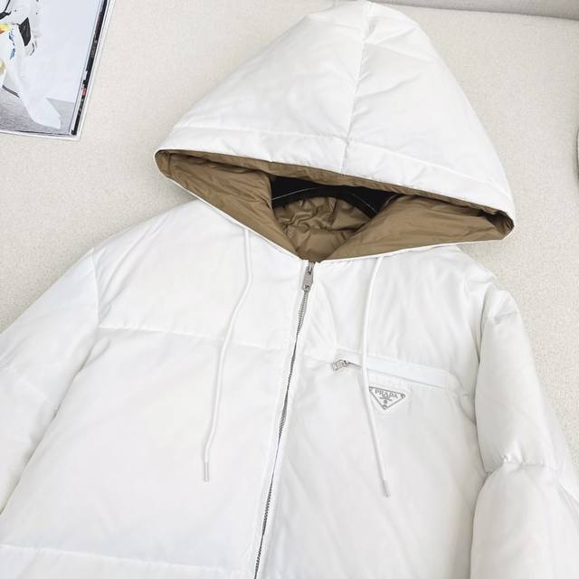 Exclusive First Release High-End Original Quality PD 25Ss Autumn/Winter Official Website Latest Color Matching Triangle Logo Decoration Hooded Down Jacket Coat Three-Dimensional Cut H-Line Classic Stylish and Handsome Original Logo Letter Logo Triangle Logo Decoration National Standard Imported 90% White Duck Down Filling Custom Khaki Lining Color Blocking Age-Reducing Effect Yb Hardware Accessories Details are Very Added Recommended Two Colors Available Now Sizes 36 38 40 S: Shoulder Width 50cm, Chest 108cm, Length 59cm. Manual measurement may have errors. DDD