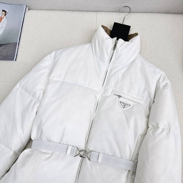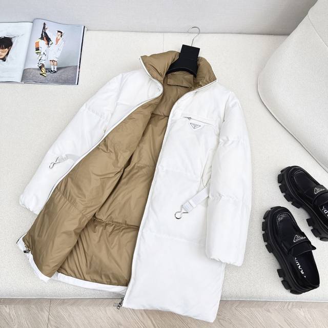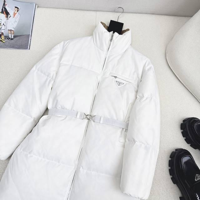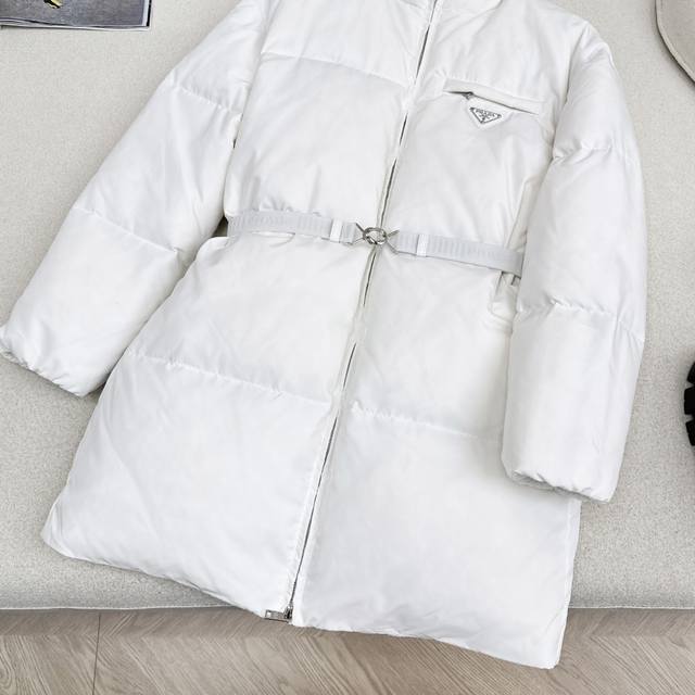 Exclusive First Release High-End Original Quality PD 25Ss Autumn/Winter Official Website Latest Color Scheme Triangle Logo Decoration Stand Collar Mid-Length Down Jacket Coat with Belt Three-Dimensional Cut H-Line Classic Stylish and Handsome Original Logo Letter Logo Triangle Logo Decoration National Standard Imported 90% White Duck Down Filling Custom Khaki Lining Color Blocking Age-Reducing Effect Yb Hardware Accessories Details are a Great Addition Recommended Two Colors Available Now Sizes 36 38 40 S: Shoulder Width 50cm, Chest 106cm, Length 80cm Manual Measurement May Have Errors DDD Ddd