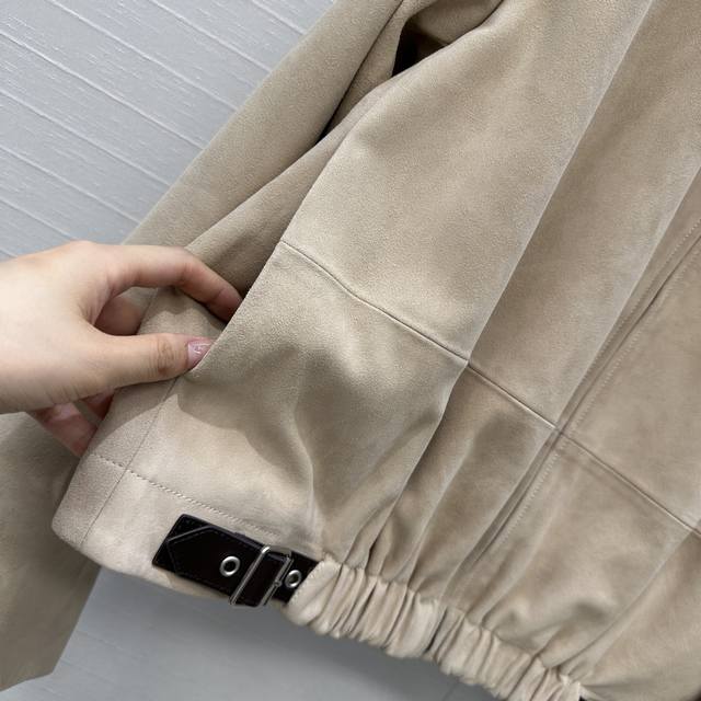Exclusive First Release, High-End Original Quality, Trendy and Stylish! Veteran Style Jacket, Genuine Leather! 100% Imported Suede Lambskin with an Amazing Texture! The gathered hem with leather buckle design is minimalist yet sophisticated. The loose, tailored fit is flattering on all body types, perfect for both casual and work occasions. A highly recommended modern and fashionable piece. Perfect workmanship and quality evident in the details. Available in two colors and three sizes. Size 38: Shoulder width 44cm, Bust 118cm, Length 55cm. (