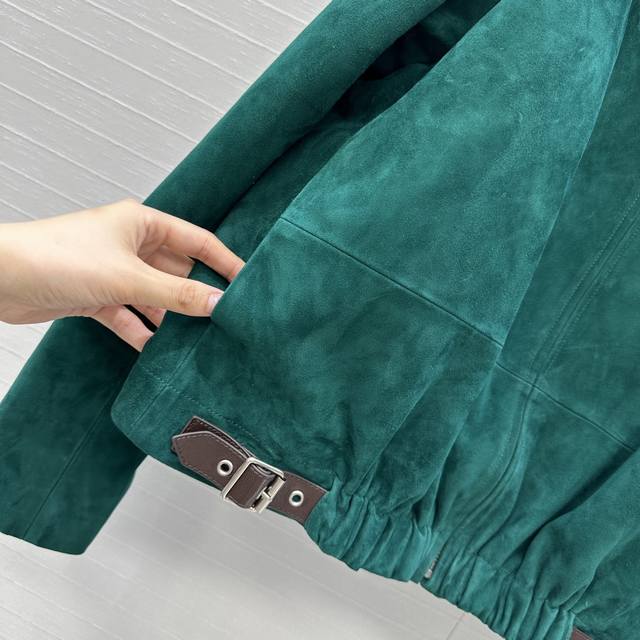 Exclusive First Release, High-End Original Quality, Trendy and Stylish! Veteran Style Jacket, Genuine Leather! 100% Imported Suede Lambskin with an Amazing Texture! The gathered hem with leather buckle design is minimalist yet sophisticated. The loose, tailored fit is flattering on all body types, perfect for both casual and work occasions. A highly recommended modern and fashionable piece. Perfect workmanship and quality evident in the details. Available in two colors and three sizes. Size 38: Shoulder width 44cm, Bust 118cm, Length 55cm. (