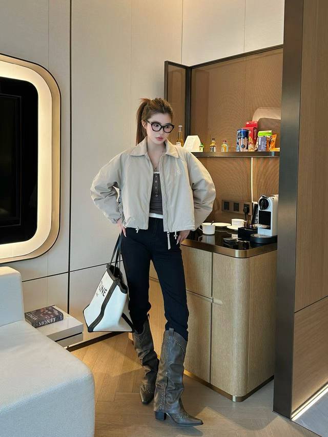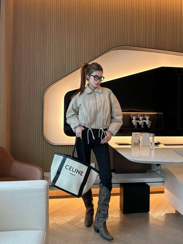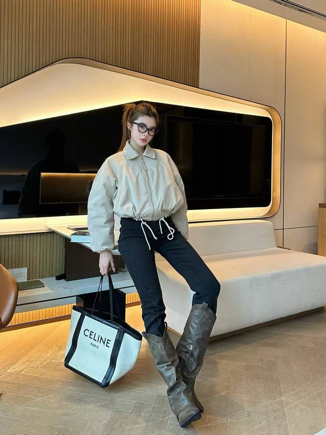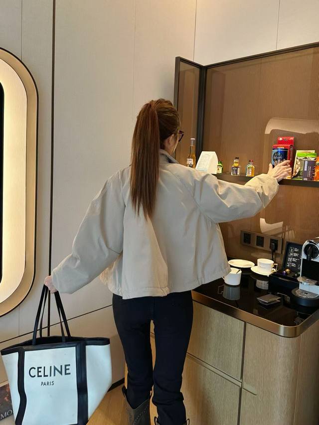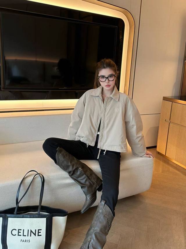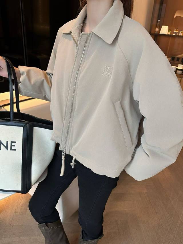 Exclusive first release, highly recommended 25-year early autumn and winter series Loe* new windbreaker short down cotton jacket lapel jacket hem drawstring design embroidered logo embellishment light and full high-end quality 2 colors Sml running volume