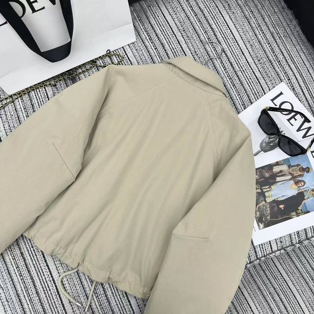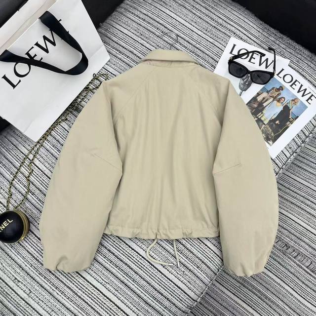 Exclusive first release, highly recommended. Loe's newest short down jacket from the 2025 Early Fall/Winter collection. Lapel collar, drawstring hem, embroidered logo accents. Lightweight and full-bodied, 90% white goose down filling, high-quality, two colors. Sml running quantity.
