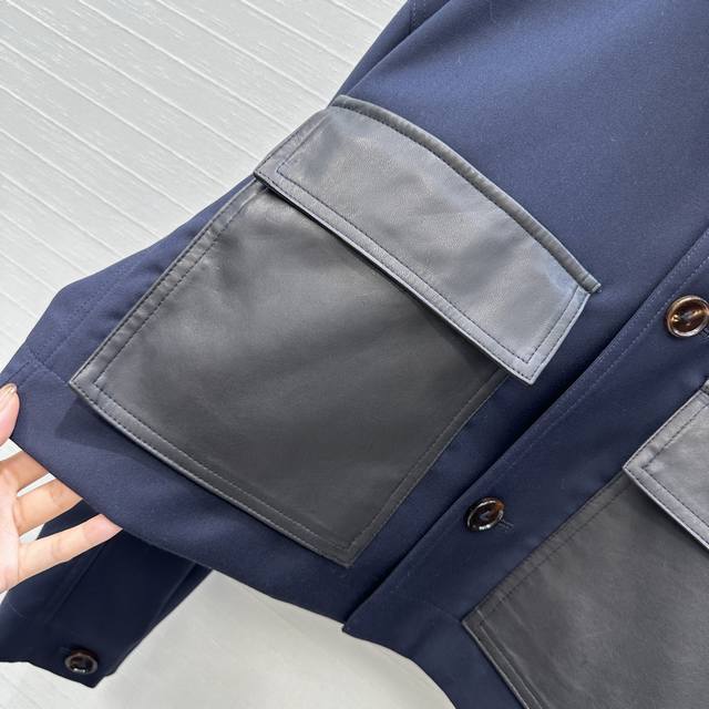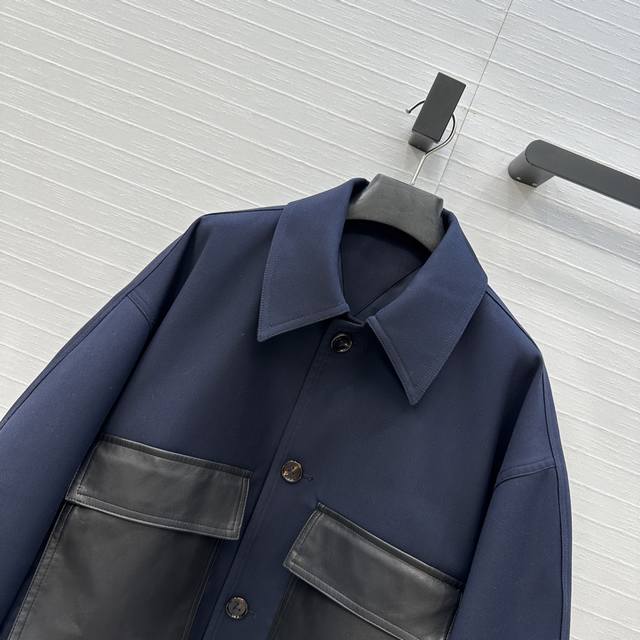 Exclusive first release of high-end original quality, Bv's long-term commitment. Barn-style casual and fashionable outfit! Midnight blue jacket! Imported 100% lambskin, large pockets, workwear design elements, curved pleated cuffs, loose fit, versatile and flattering, modern and cool! Perfect workmanship and quality evident in the details. Available in 3 sizes of the same color. Size 38, dropped shoulders, chest 118cm, length 50cm. DDD