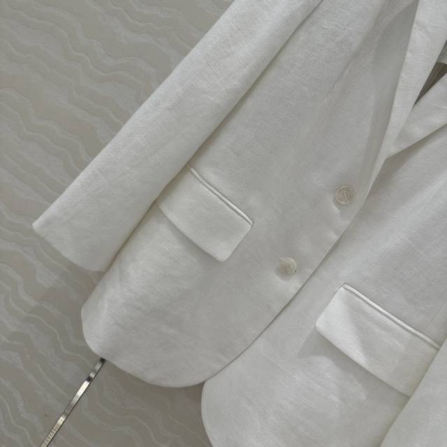 Exclusive first release of high-end original quality, Ed's long-term wear! Gao Yuanyuan's same high-end linen suit! Imported heavyweight 58 linen 42 linen fabric, sleeve contrast stitching design, all hand-made hemming process! Half-lined design embroidered letters low-key luxury! Exclusive custom fabric texture is wide and comfortable! French elegance and casual temperament! Sweet or salty, age-reducing outfit is fashionable and advanced! Elegant and atmospheric version makes the upper body look super slim! Perfect workmanship quality depends on the details. Two colors and 3 sizes. Available now! S size: shoulder width 43, chest circumference 92, length 73.