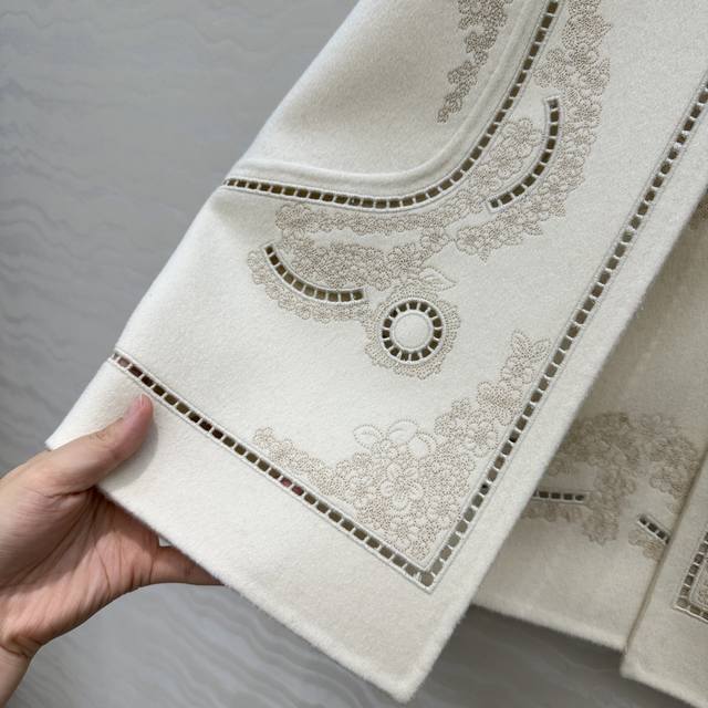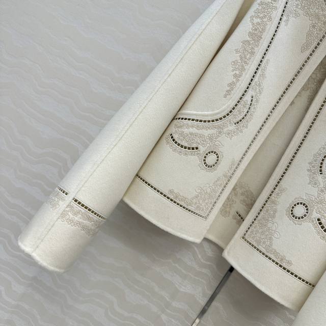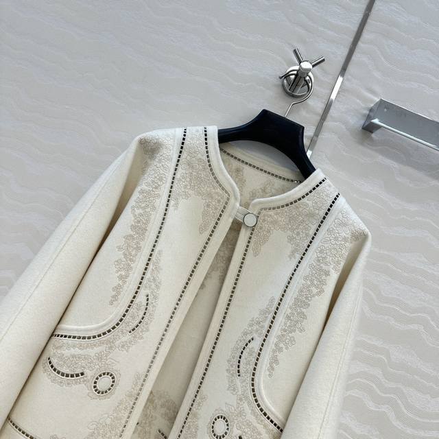 Exclusive first release of high-end original quality! H high-sense wear! A must-have for fair-skinned, wealthy women, this heavily crafted, 10,000-needle openwork embroidered cashmere jacket! A perfect layering accessory for fall and winter! Handmade, double-sided cashmere jacket! Custom-made, 3D embroidered openwork stitching, the double-sided 10,000-needle embroidery exudes a luxurious, high-end feel! Elegant, intellectual, and gentle! Imported 90% wool and 10% cashmere fabric has a strong, wide, and stylish texture, and the H-style silhouette is versatile and capable! Versatile and fashionable, it makes you look slimmer and taller! Perfect workmanship and quality are reflected in the details! Available in two colors and three sizes. Good things don't wait. Size S: chest 100, length 56.