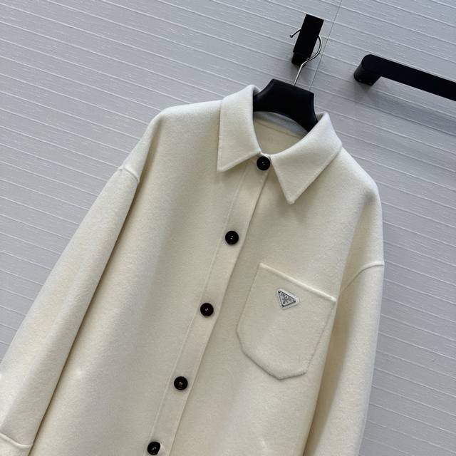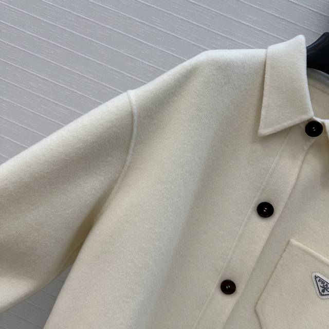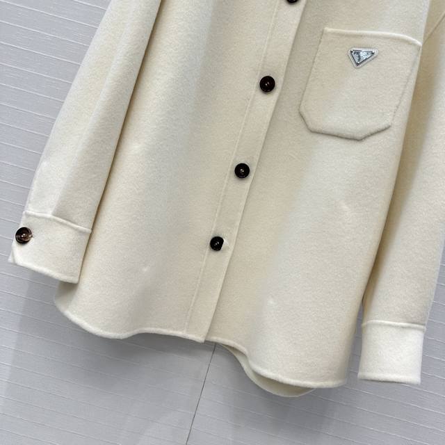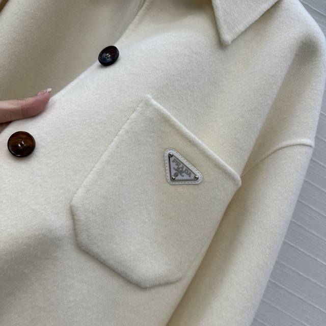 Exclusive first release of high-end, original quality! PR's new early fall triangle-label coat! A must-have for fashionistas! Handmade, double-faced nylon and cashmere coat! The elegant lapel shirt-like silhouette is both stylish and fashionable! Imported 90% wool and 10% cashmere fabric is delicate, soft, and stylish, with a versatile H-cut silhouette for a refined and capable look! Versatile and fashionable, it creates a slimming and tall look! Perfect workmanship and quality are reflected in the details! Three colors and three sizes. Size 36, dropped shoulders, chest circumference 112cm, length 71cm.