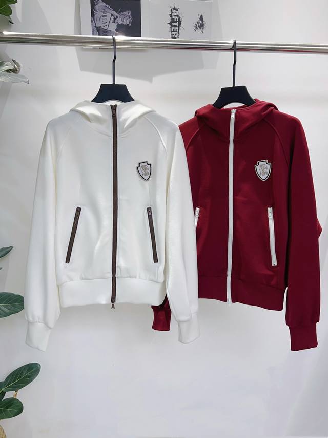Brunell*25 New Double Zipper Hooded Long-Sleeve Sweatshirt Jacket! Soft and comfortable cotton fabric, with zippered pockets, embroidered badge design on the chest, and custom color scheme that's stylish and sophisticated! Casual fit, flattering on all body types. Highly recommended sizes S, M, and L~ White and Red