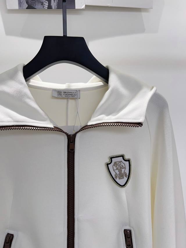 Brunell*25 New Double Zipper Hooded Long-Sleeve Sweatshirt Jacket! Soft and comfortable cotton fabric, with zippered pockets, embroidered badge design on the chest, and custom color scheme that's stylish and sophisticated! Casual fit, flattering on all body types. Highly recommended sizes S, M, and L~ White and Red
