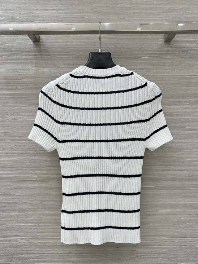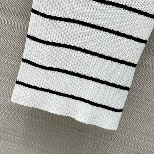 Exclusive First Release: Original Quality Missd26 Early Spring New Arrival Series! High-end black and white knit short-sleeved top! Classic small round neck, original custom-made German machine vertical stripe knit. Contrasting black and white stripe design! Looks great layered or worn alone! Highly recommended as a stylish and sophisticated piece! Imported pure cotton yarn, delicate and comfortable texture. Features a logo inlay, and a waist-cinching design that's incredibly slimming! A must-have for sophisticated women! In stock and available now! 3 sizes per color, large orders welcome! DDD