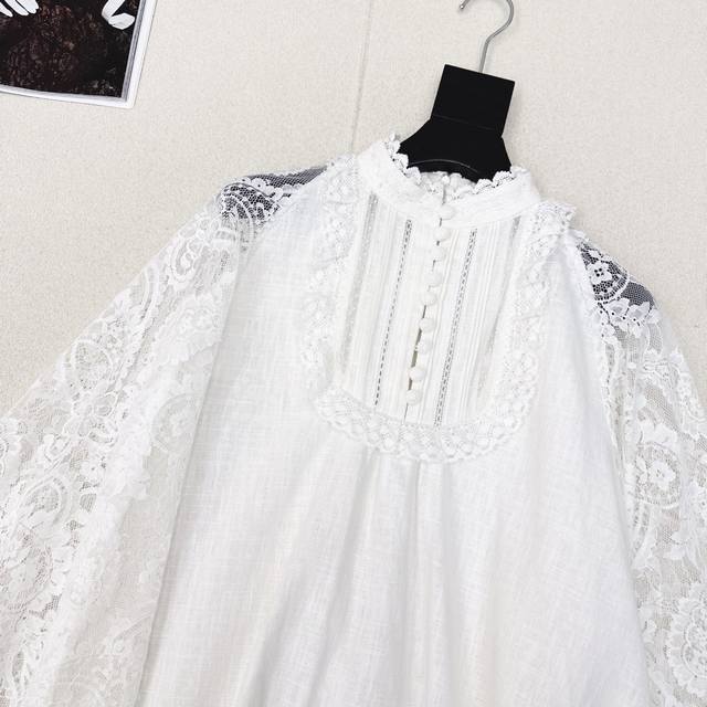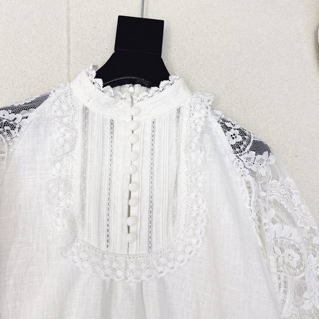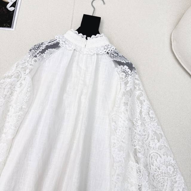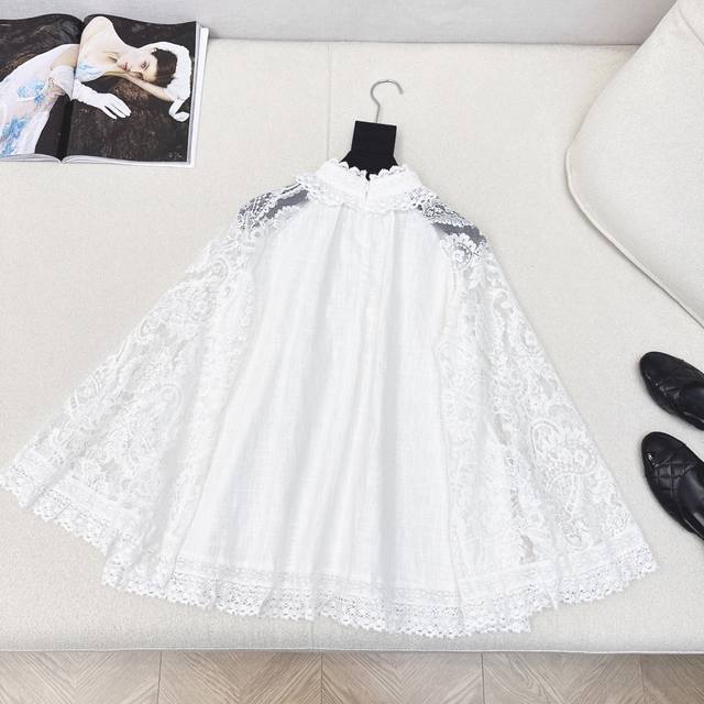 Exclusive first release: Zim 25Ss, the latest early autumn holiday style, palace style, lace stand-up collar linen shirt, lace embroidery, positioning stitching details, breathable and comfortable fabric, cape-style large sleeves design, large A-shaped cut, suitable for the upper body, French romantic, casual and elegant style, linen fabric has a good texture, all colors are available for sale. Sml S size: dropped shoulder, chest length 65, manual measurement, there may be errors