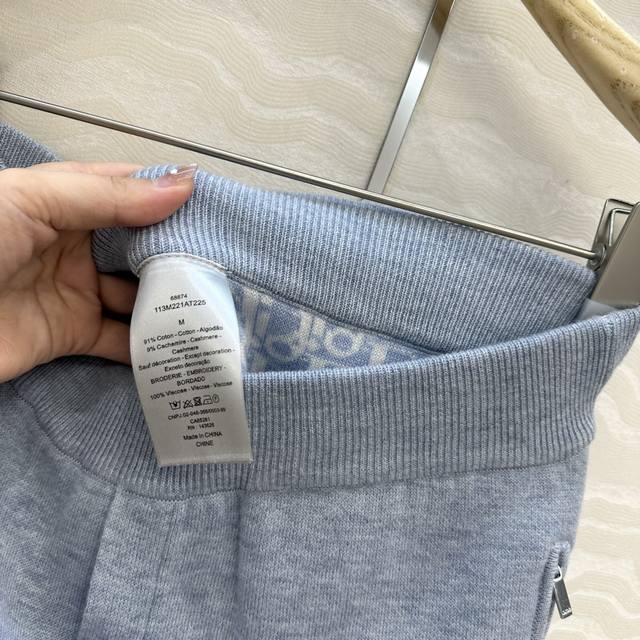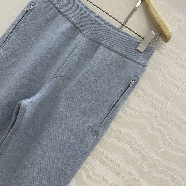 Exclusive first-run high-end original quality! Missd25 new fall/winter arrival! Premium Baby Blue new color monogram logo sporty knit pants! Custom cream blue color, love the double-woven letter jacquard weave, original custom hardware, and low-key luxury embroidered letters on the pockets! The cuffed design is fashionable and high-end! A must-have for all-Americans! Unisex classic style, perfect for everyone, and super slimming! Swiss machine embroidery and sewing technology, imported cashmere and wool yarn double-sided jacquard fabric, highly recommended. Available in sizes 36-40 per color. Size 38, waist 68, hip 94, pants length 103.