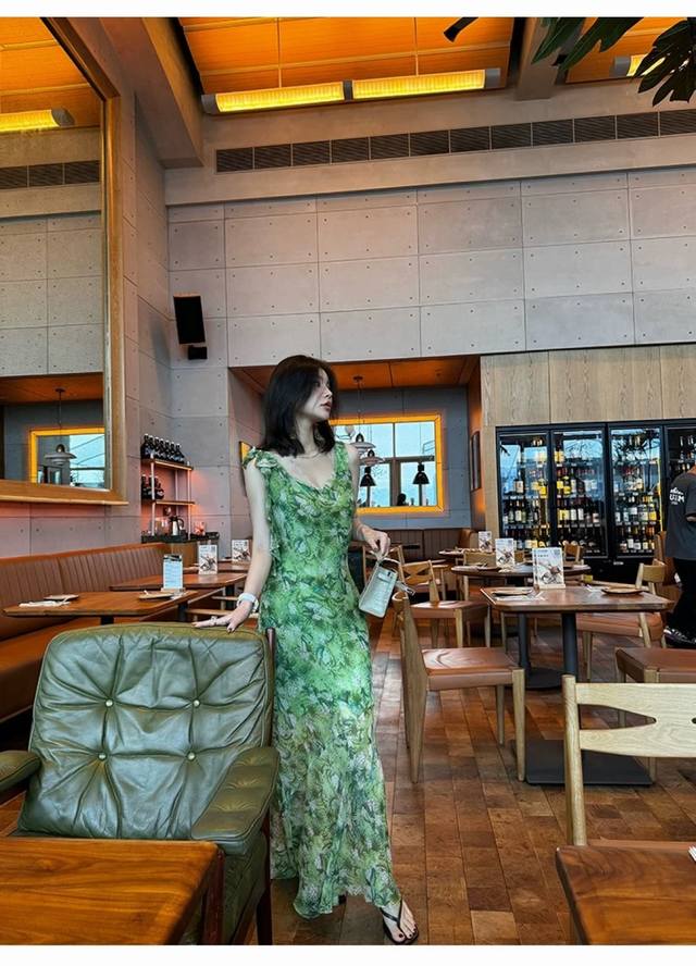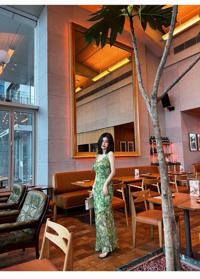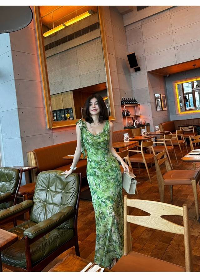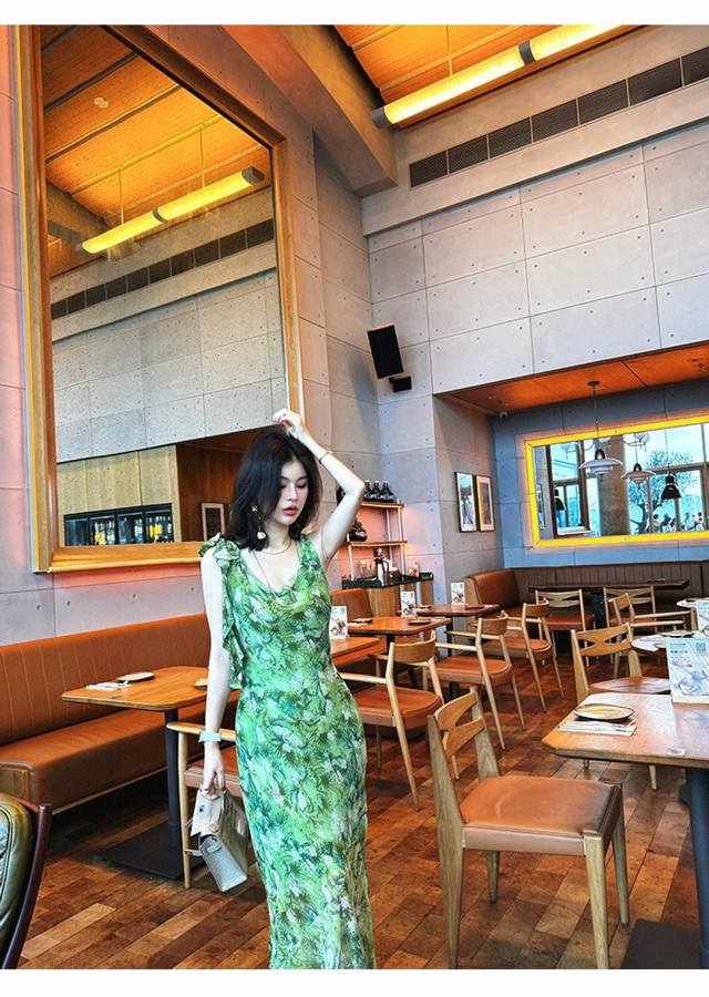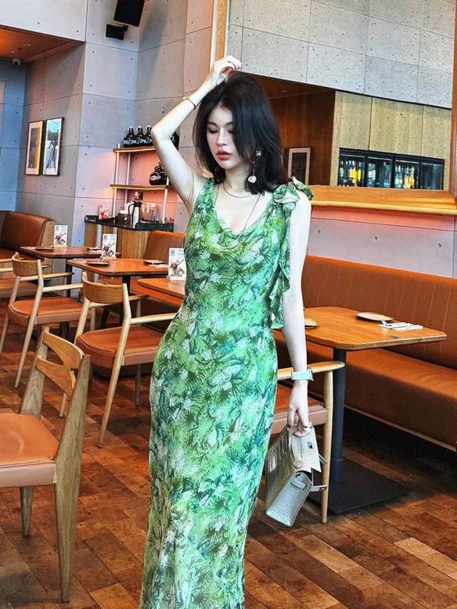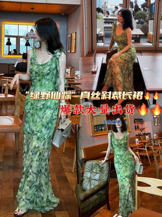 Exclusive hot item, shipped in large quantities. "The Wizard of Oz" silk bias-cut maxi skirt with dark green pattern printing, as if it has its own oxygen sense. The bias cut cleverly outlines the waist, making it look slim and smart. The silk fabric has a pearly luster in the sun, and the whole person is glowing. Dates and vacations are like walking freely in the air. Smlxl