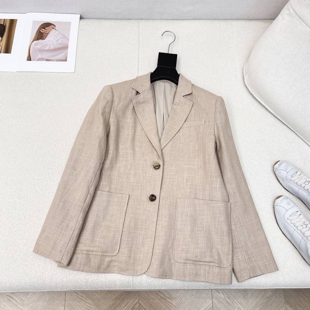 Exclusive launch of the Max 25Ss, the latest early fall minimalist linen suit. Minimalist, wide-shouldered, H-cut silhouette. High-density linen fabric offers a relaxed, effortless, and luxurious look. Highly recommended for your own wear. 3D sculpting, retro and elegant, imported linen fabric boasts a stunning texture. Two colors available. Sml: Size S: Shoulder 40cm, Chest 104cm, Length 65cm. Manual measurements may vary.