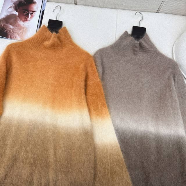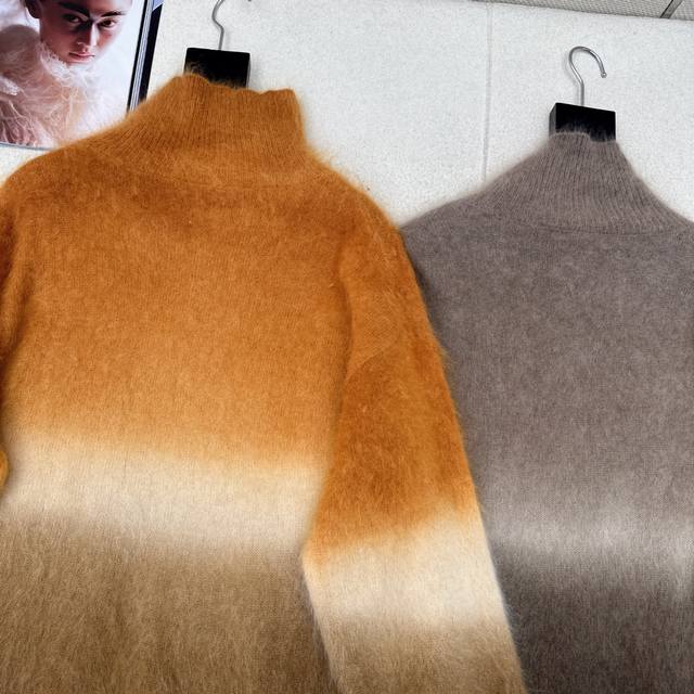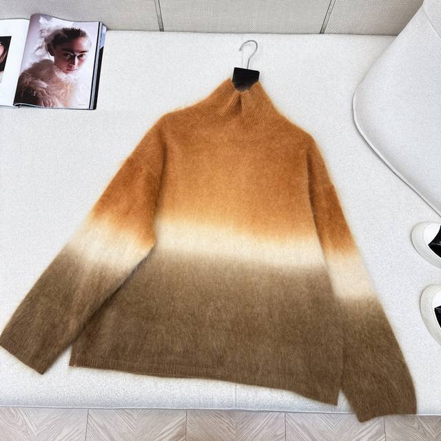 Exclusive Max 26Ss Early Spring New Gradient Color Design Turtleneck Sweater - Hot Selling Item, Recommended for a Unique Look! 100% Wool Yarn, Warm and Fluffy, Extremely Comfortable. Can be worn alone or as a base layer, or layered under a coat or jacket. Suitable for multiple seasons, a truly stylish look! Two colors available in stock, sizes S, M, and L. Size S: Drop shoulder, bust 128cm, length 66cm. Measurements may vary slightly due to manual measurement. DDD