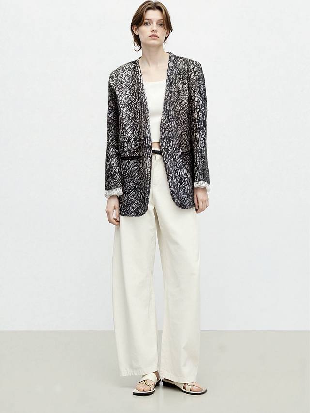 : A versatile piece for any occasion: pair it with jeans for understated elegance and pair it with a dress for an evening look. When minimalist silhouettes collide with sophisticated craftsmanship, the "paradoxical aesthetics" of a suit are stunningly presented. From fabric selection to lace hemming, every step hides "restrained refinement": minimalism is the bones, and extreme sophistication is the flesh and blood. The collision of sequins and lace is precisely the gentle expression of style ambition.