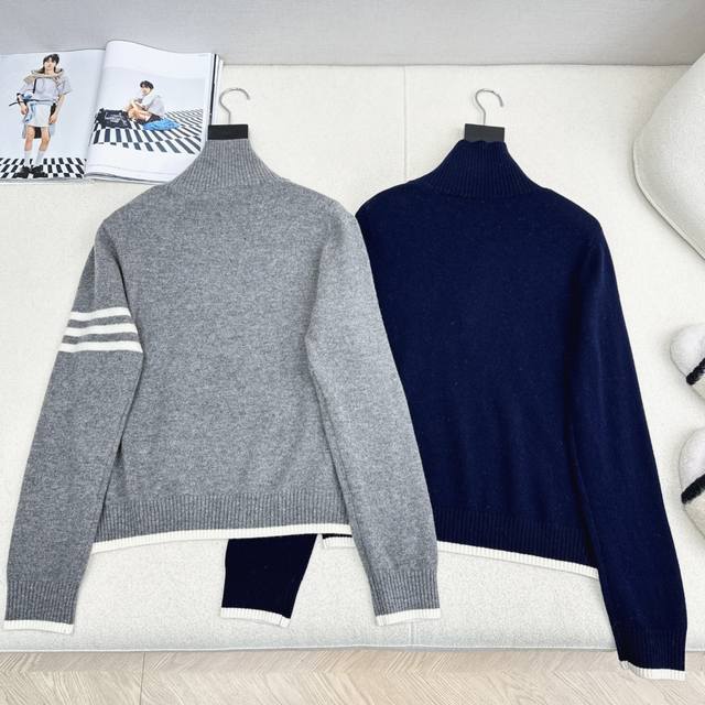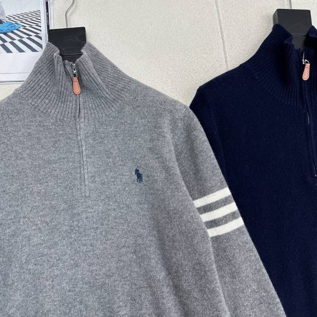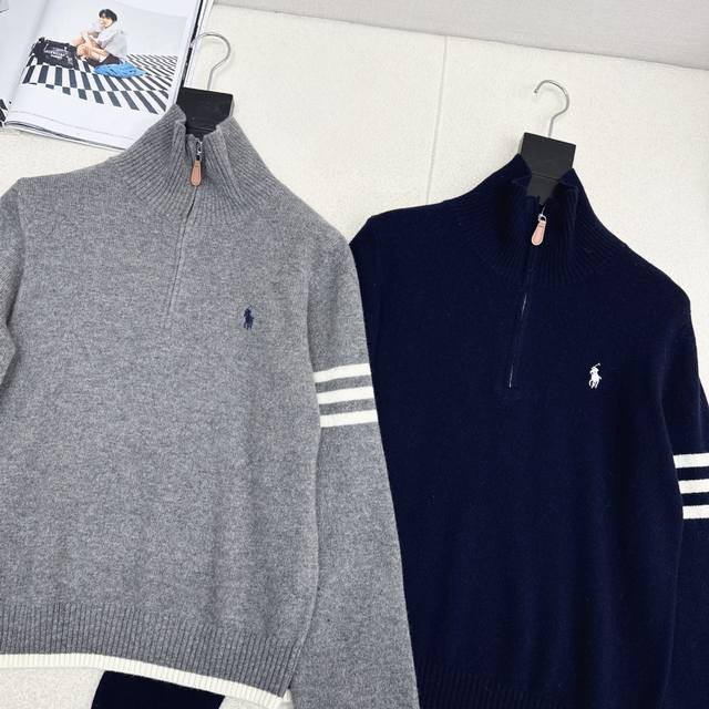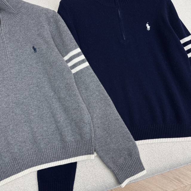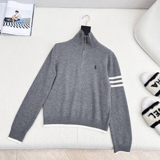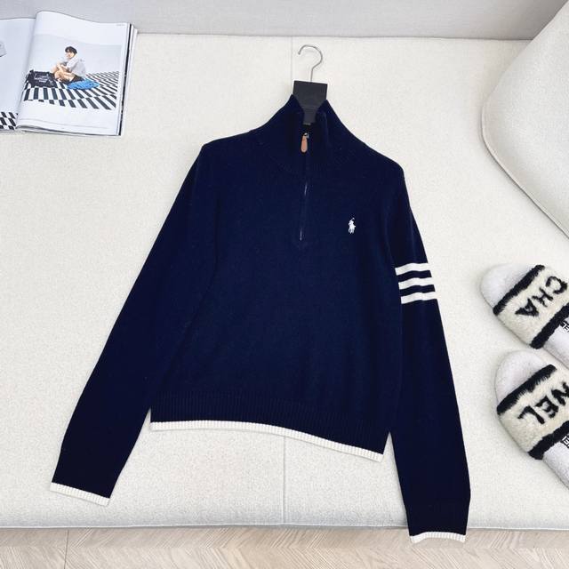 Exclusive RL 25Ss Autumn/Winter Newest Stand Collar Half-Open Sweater - A must-have for a youthful, preppy style! A versatile and easy-to-wear design that flatters all body types. Classic striped design on the arms. A beautiful and unmissable casual piece. Available in three colors. Sizes S, M, and L. S size: Shoulder width 42cm, Chest 100cm, Length 58cm. DDD