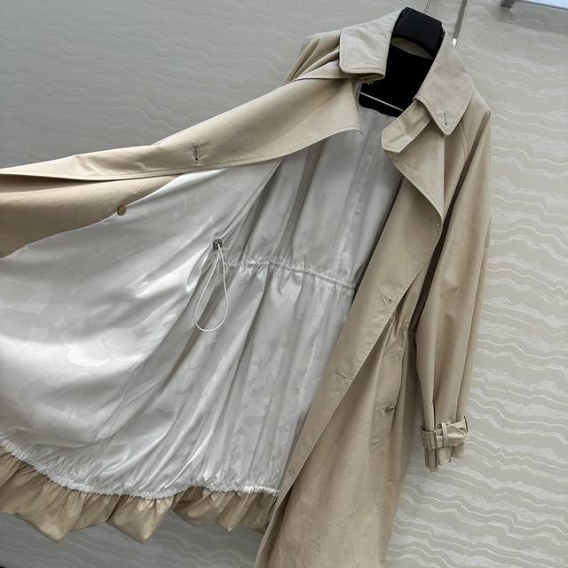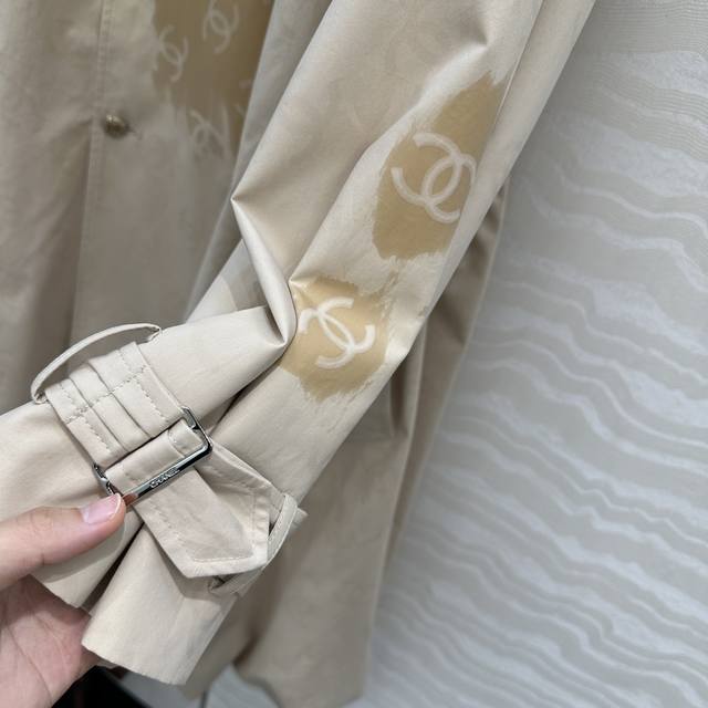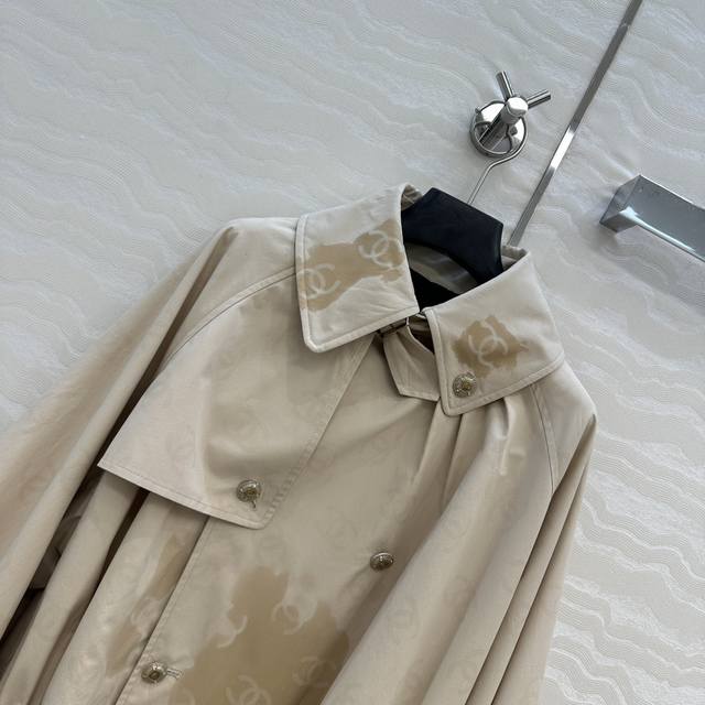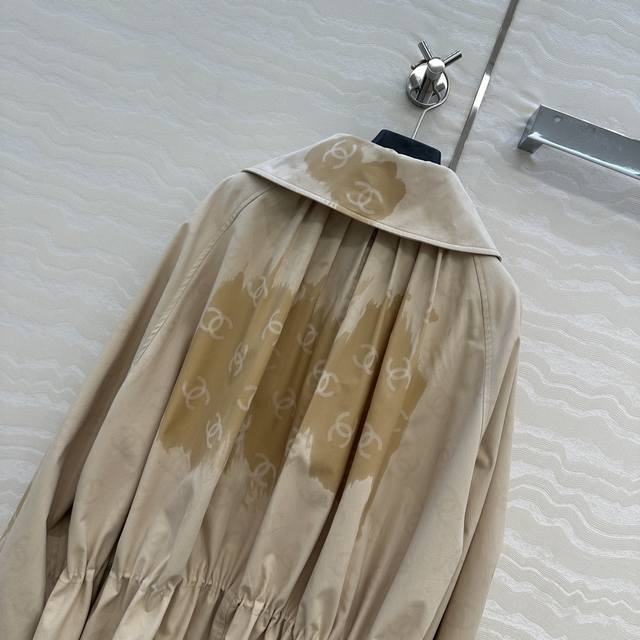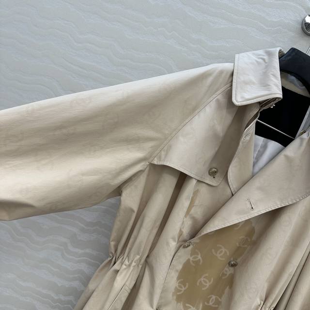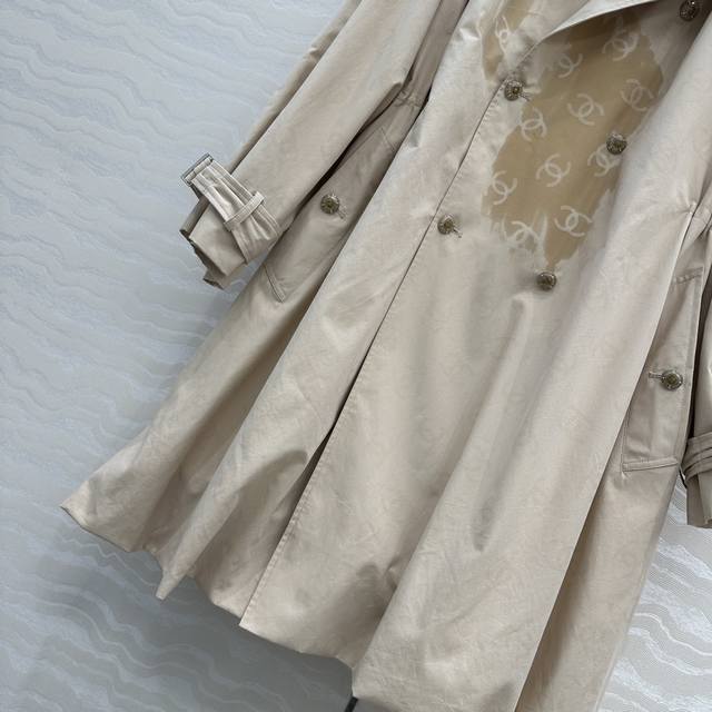 Exclusively debuting a new, high-end, original-quality Coco Girl 25B trench coat featuring a water-lifting logo that creates a subtle pattern when exposed to water! A subtle, understated sense of luxury, crafted from custom silk cotton fabric! The double C pattern reveals itself upon contact with water, creating a playful and interesting look. The dropped shoulders, drawstring waist, and puffy, pleated hem create a versatile silhouette for every occasion, while the top is incredibly flattering! Elegant and effortless, this sophisticated style is complemented by a camellia jacquard lining and impeccable workmanship and meticulous detailing. Available in 3 sizes, all in stock, size 36: dropped shoulders, chest 140cm, length 103cm.