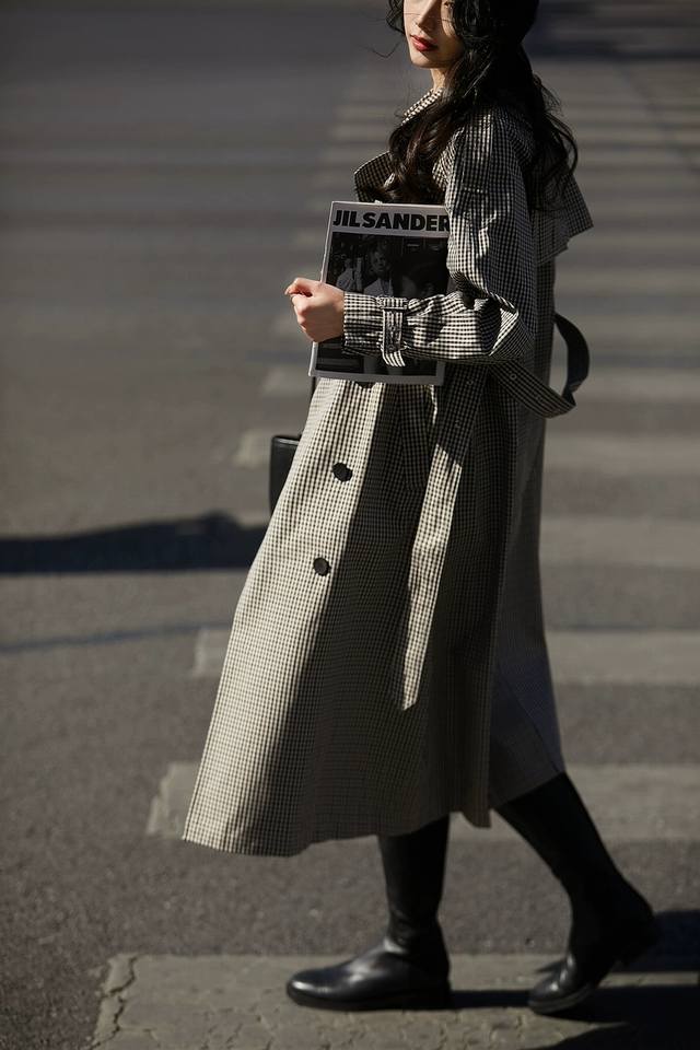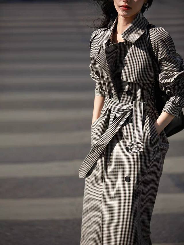 / Exquisite workmanship British retro yarn-dyed plaid double-breasted trench coat