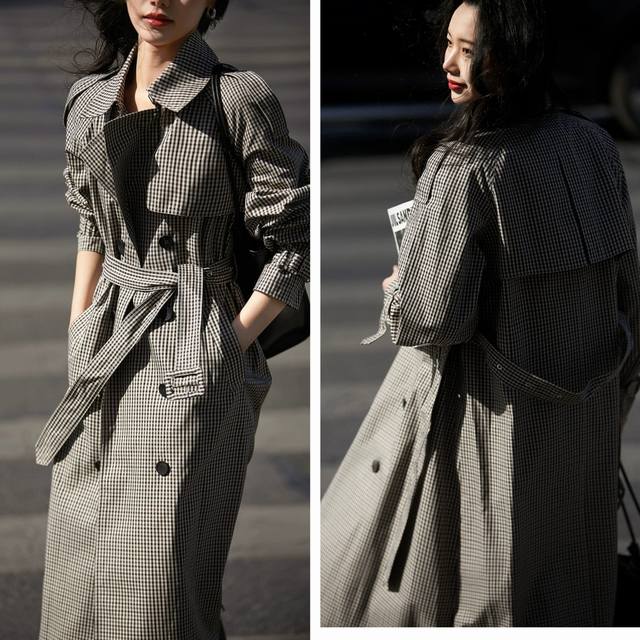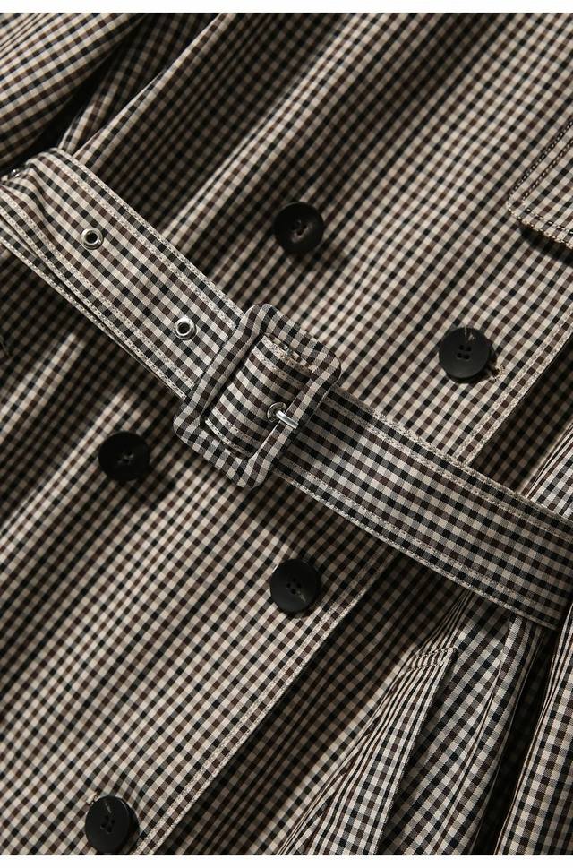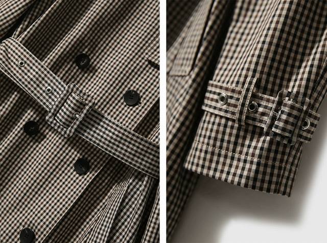 Exquisite workmanship British retro yarn-dyed plaid double-breasted trench coat mid-length coat solid color four sizes Smlxl
