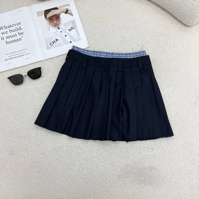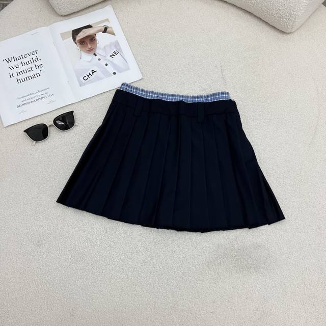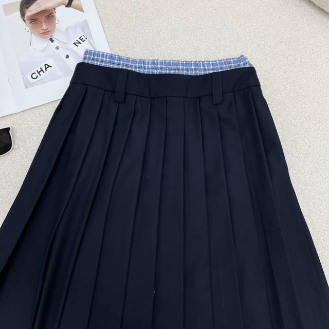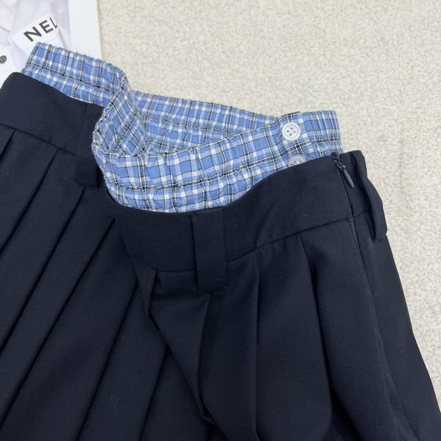 Fake two-piece contrasting plaid waistband pleated skirt in two lengths, suitable for both sweet and savory. The most versatile piece for a versatile girl. Super youthful and youthful. The accordion pleated design contains anti-exposure shorts inside. The design is particularly considerate. The contrasting plaid waistband design is suitable for daily wear with T-shirts or shirts. One color, three sizes, long and short.
