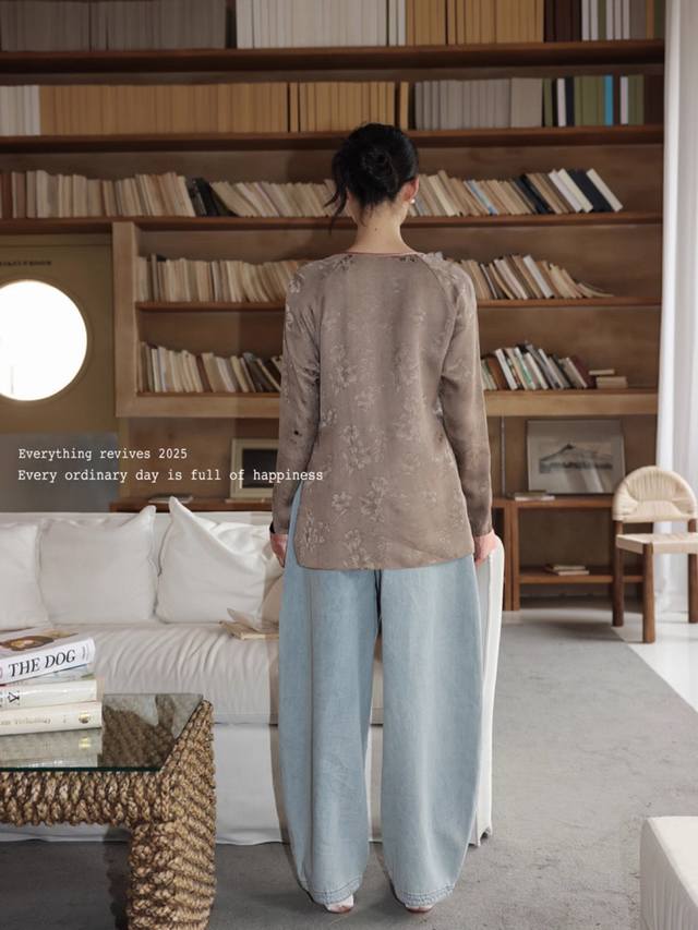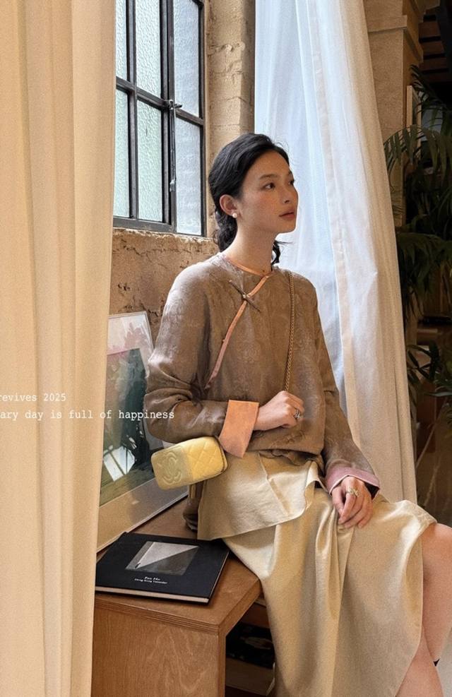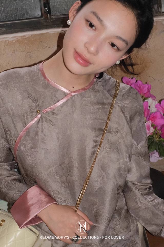 Fashionable new national style! Oriental new noble powder flower face cool noble flower vine oblique collar top, 100% rayon jacquard texture full, custom dyed gray low-key luxury, peony flower bottom atmosphere and charm, Smlxl